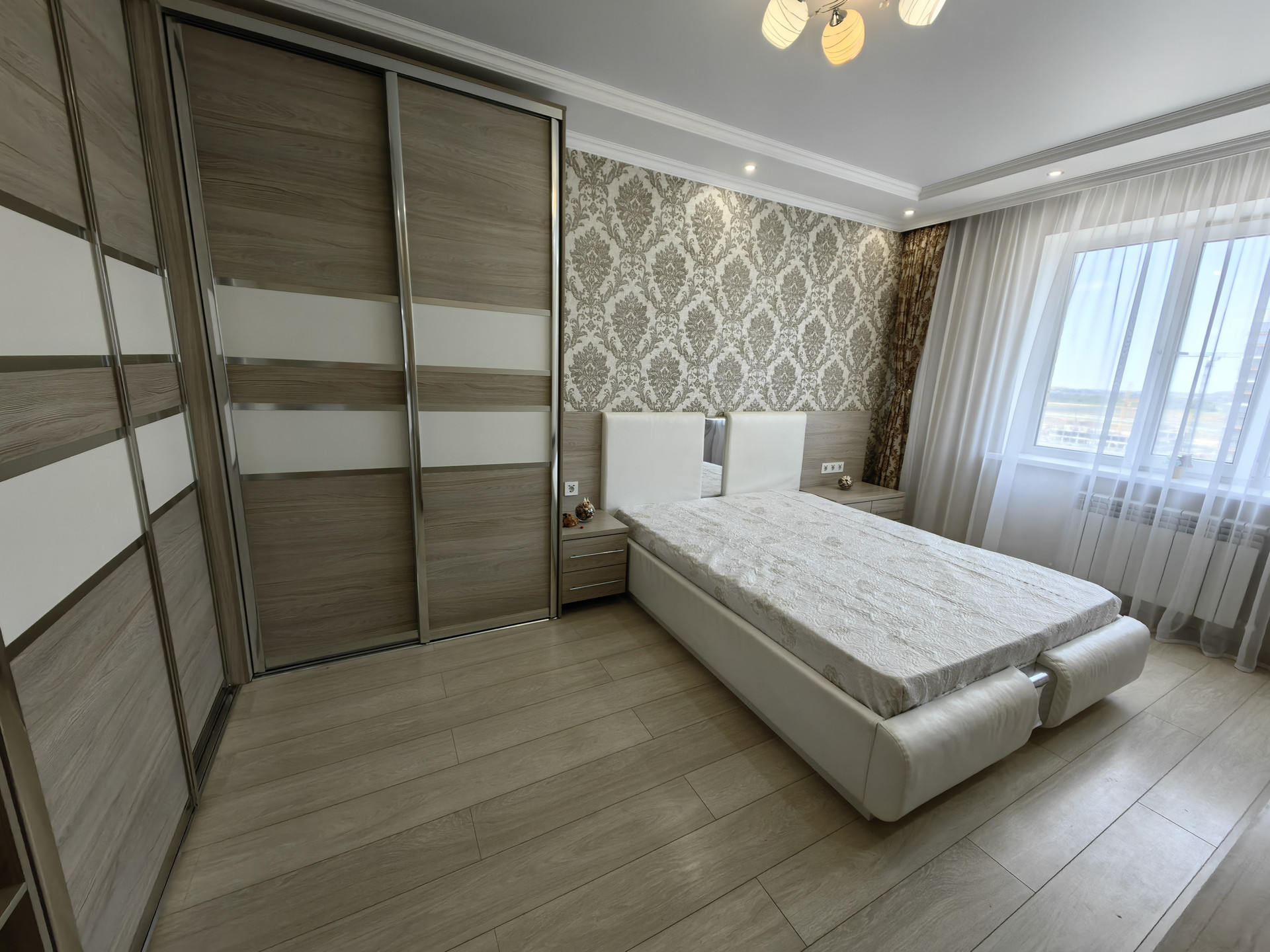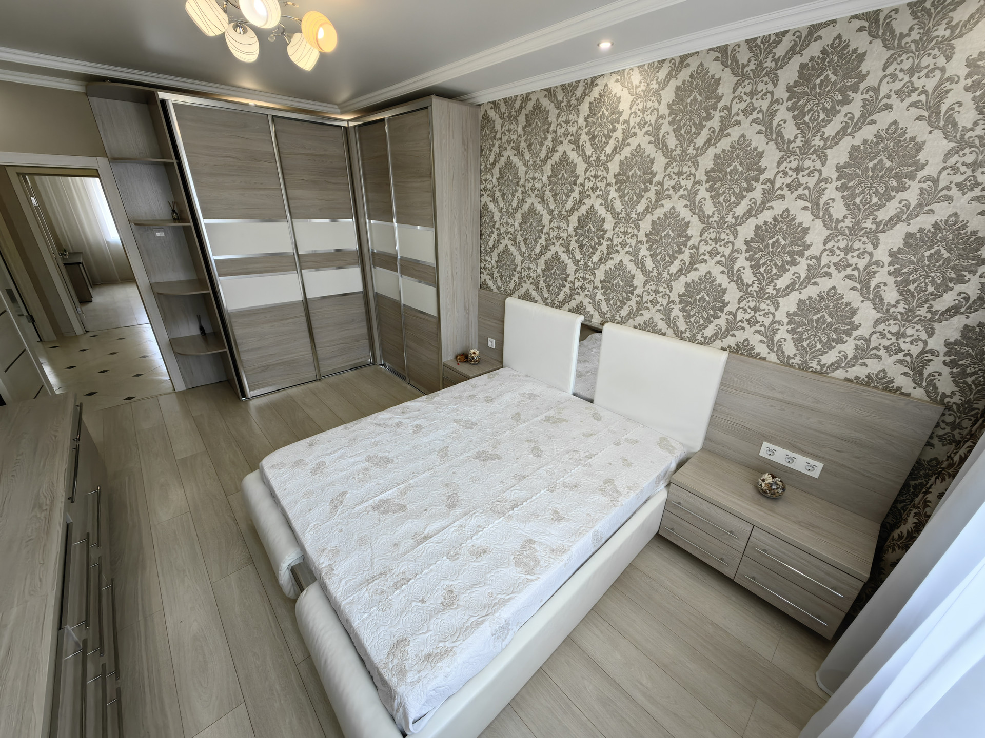 Остаётся в квартире полностью всё, что на фото (Зеркальный шкаф в прихожей; угловой, вместительный шкаф в спальне, подвесная тумба под телевизор, кровать, прикроватные тумбочки с розетками 220 В с USB портами USB зарядкой); в гостиной - шкаф-купе, диван, тумба под телевизор; в кухне - встроенный кухонный гарнитур с дорогой фурнитурой и фасадами в алюминиевом профиле, обеденная группа, холодильник, посудомоечная машинка, варочная панель, духовой шкаф, вытяжка, на лоджии - встроенные шкафы, сушилка для одежды). Лоджия утеплена и со шкафами для хранения.