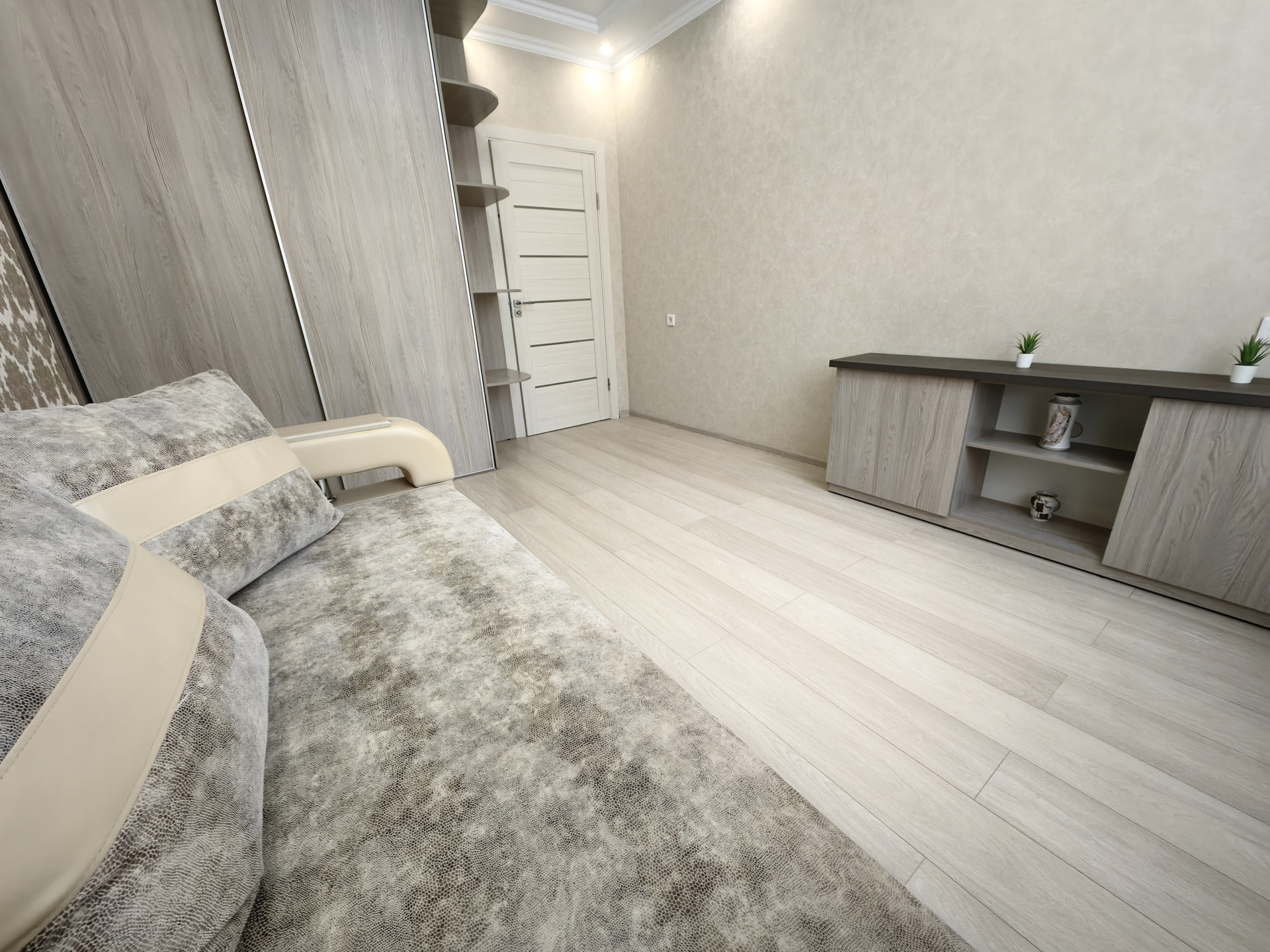 Дизайн ремонта и мебели в приятных тонах.