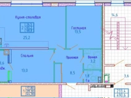 Общая площадь 68.6 м2