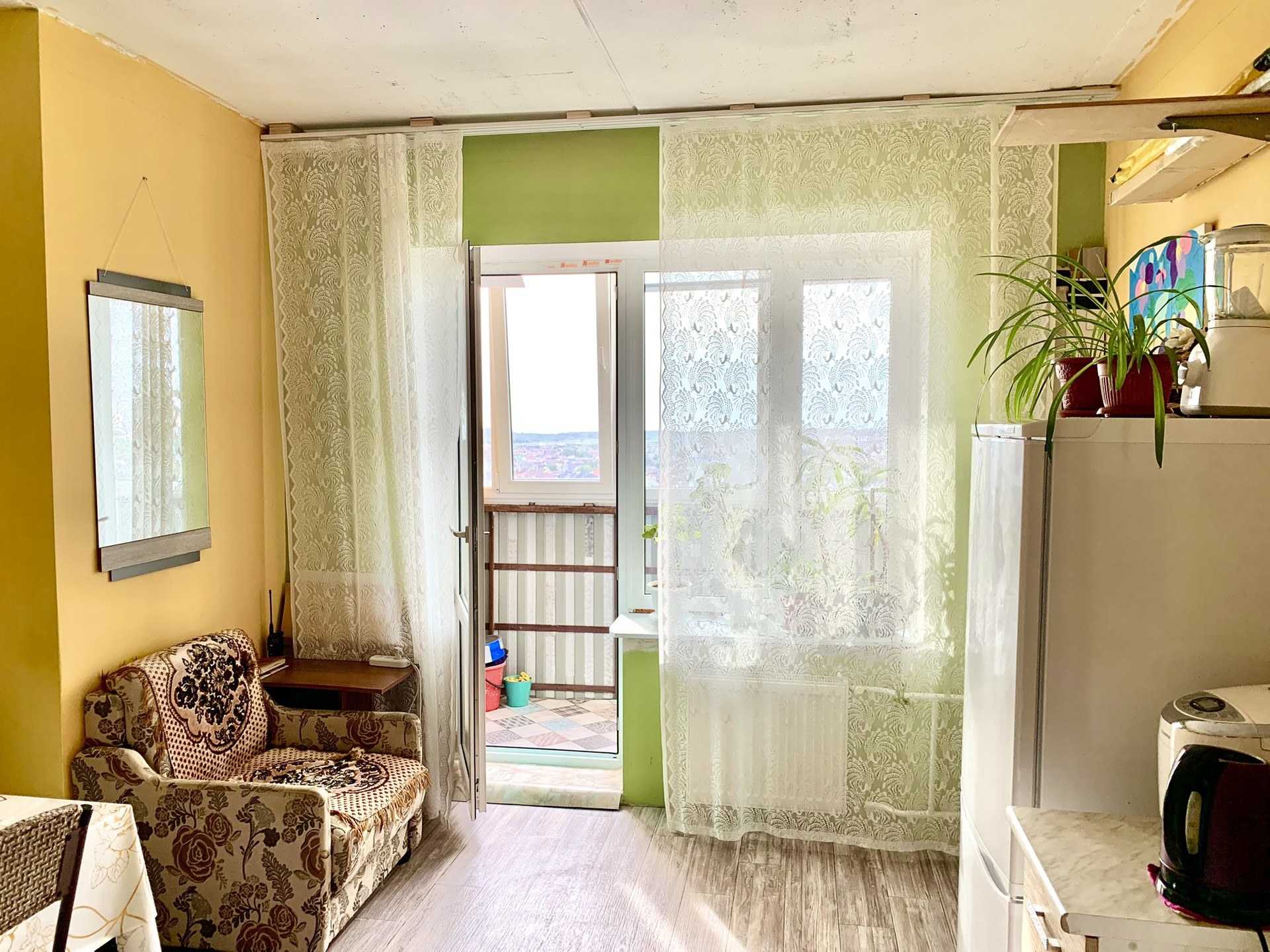 Квартира имеет продуманную планировку: жилая площадь составляет 17 квадратных метров, а кухня — 15 квадратных метров, что позволяет создать уютное пространство для приготовления пищи и семейных ужинов. Благодаря высоте расположения квартиры, из окон открывается прекрасный вид, не в окна соседям .