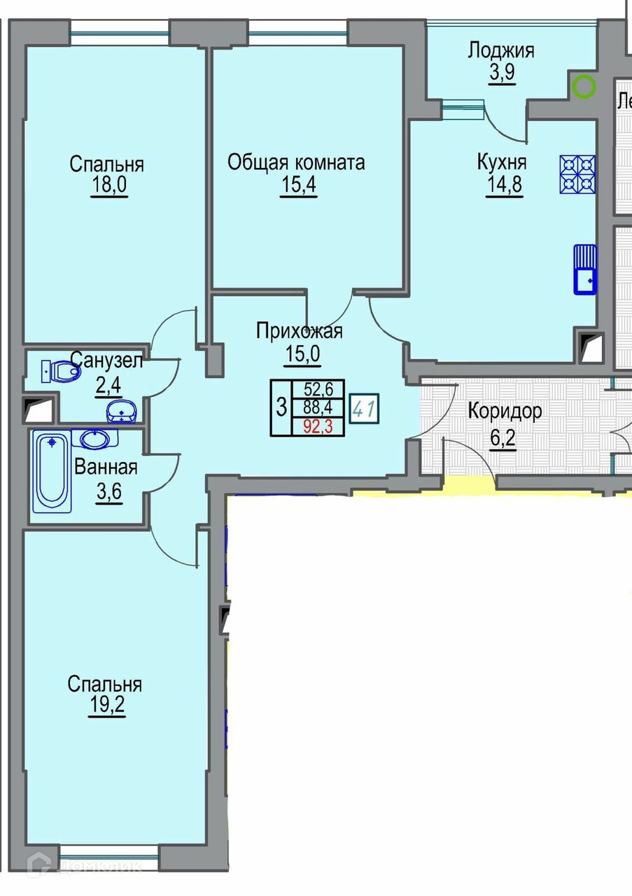 Общая площадь 92.3 м2