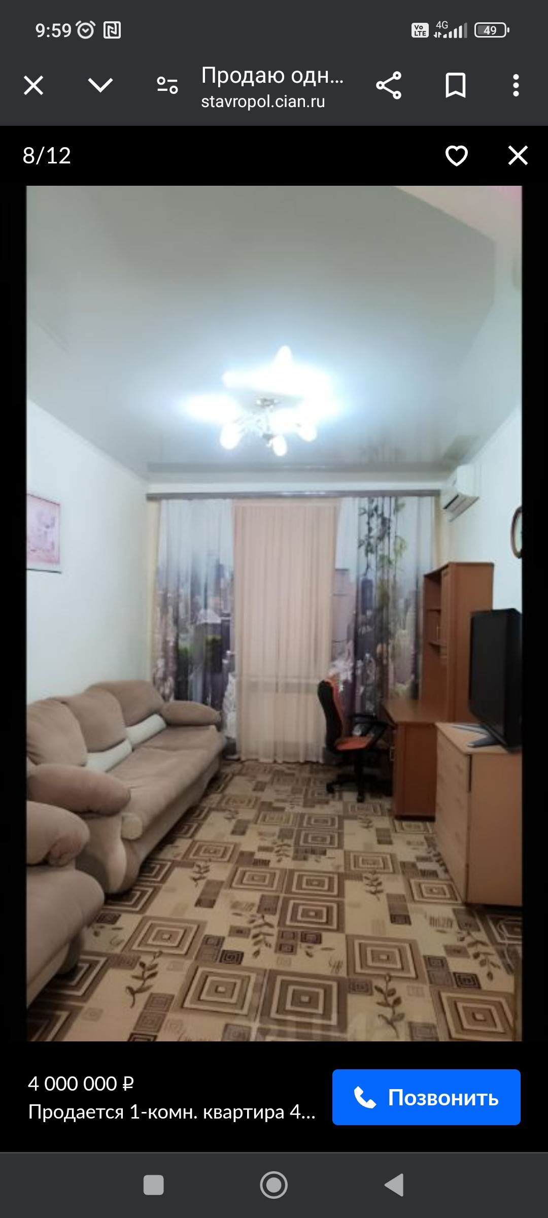 1-комнатная квартира, 41 м2, этаж 1 / 6, на продажу в Ставрополе, Комсомольская улица, 41