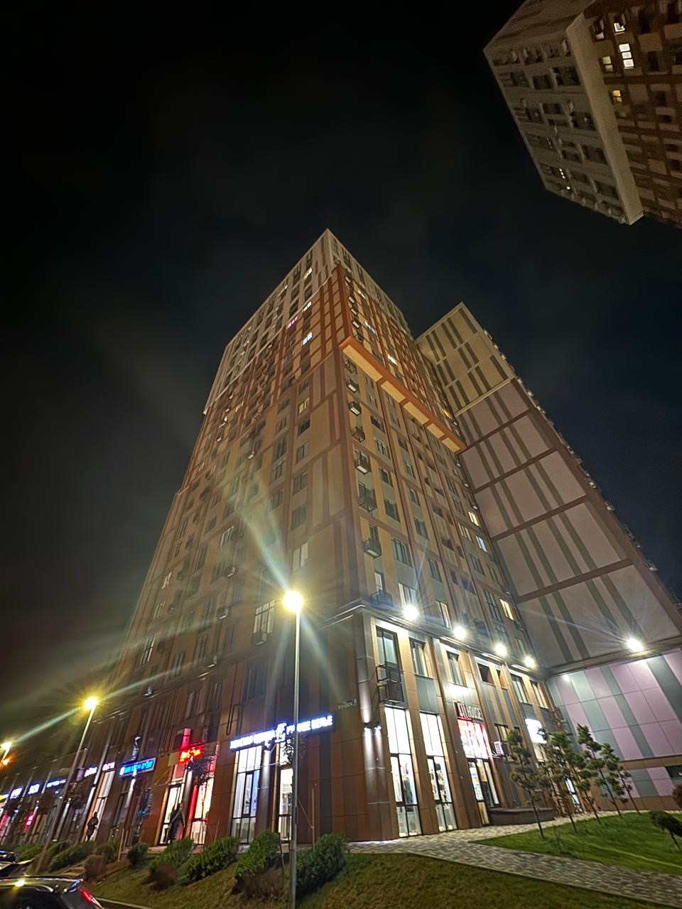 в одном из самых оживленных и развитых улиц по адресу  ул 50 лет ВЛКСМ 11/1 с подземным паркингом , двор без машин, закрытая территория, охрана и видео наблюдение.