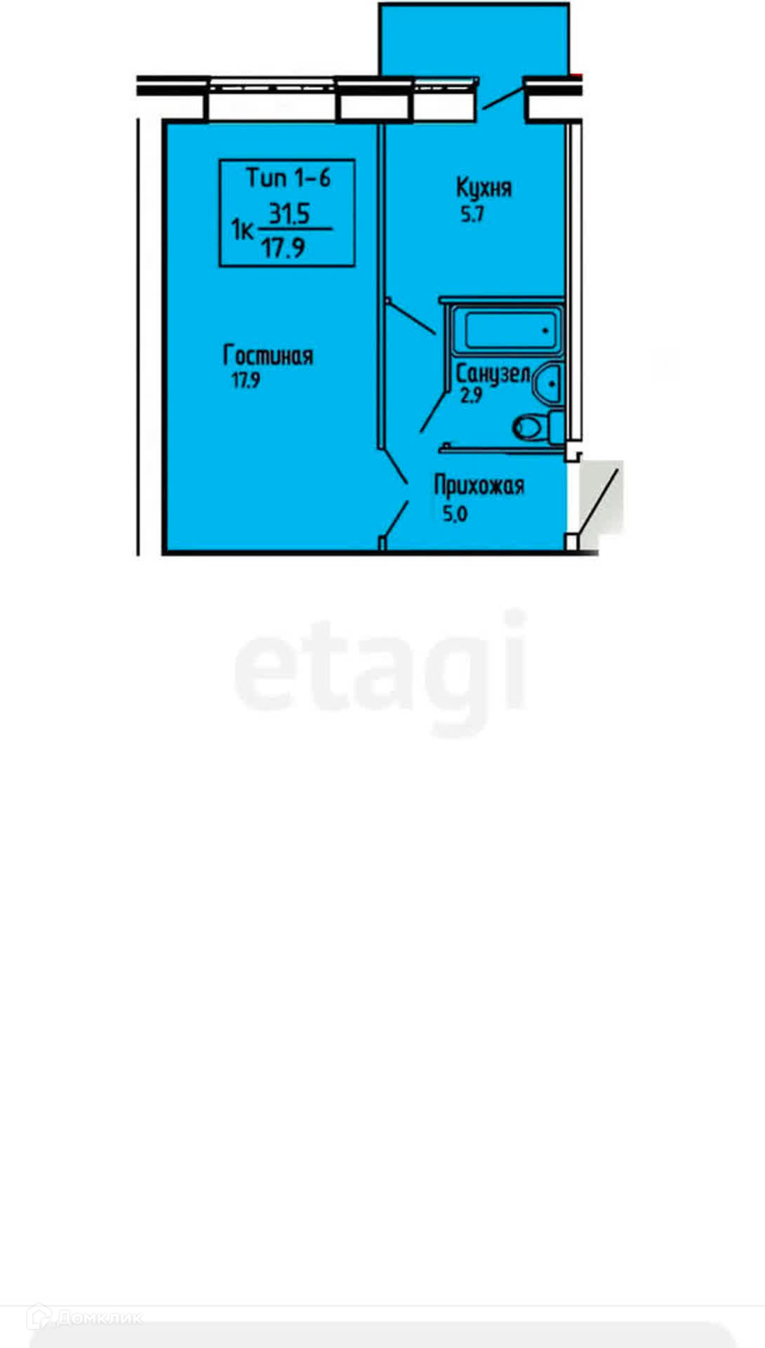 Общая площадь 32 м2