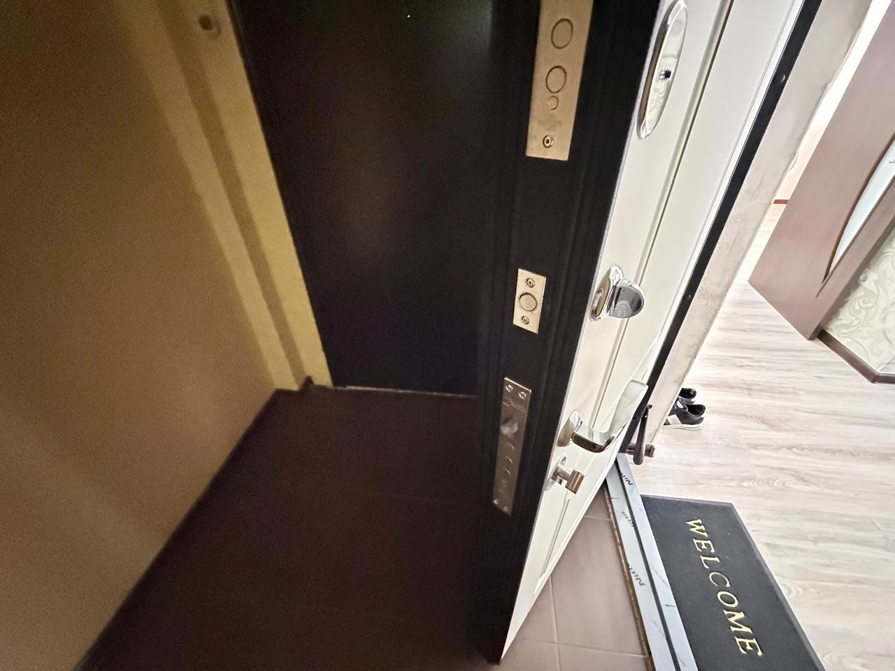 Для обеспечения безопасности жильцов в доме установлен домофон и кодовая дверь.
