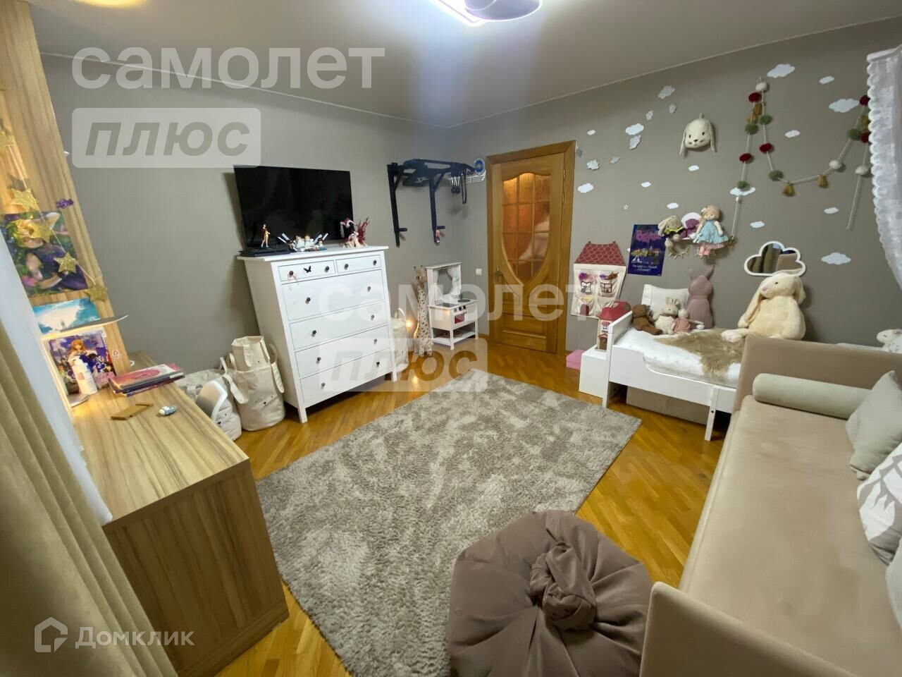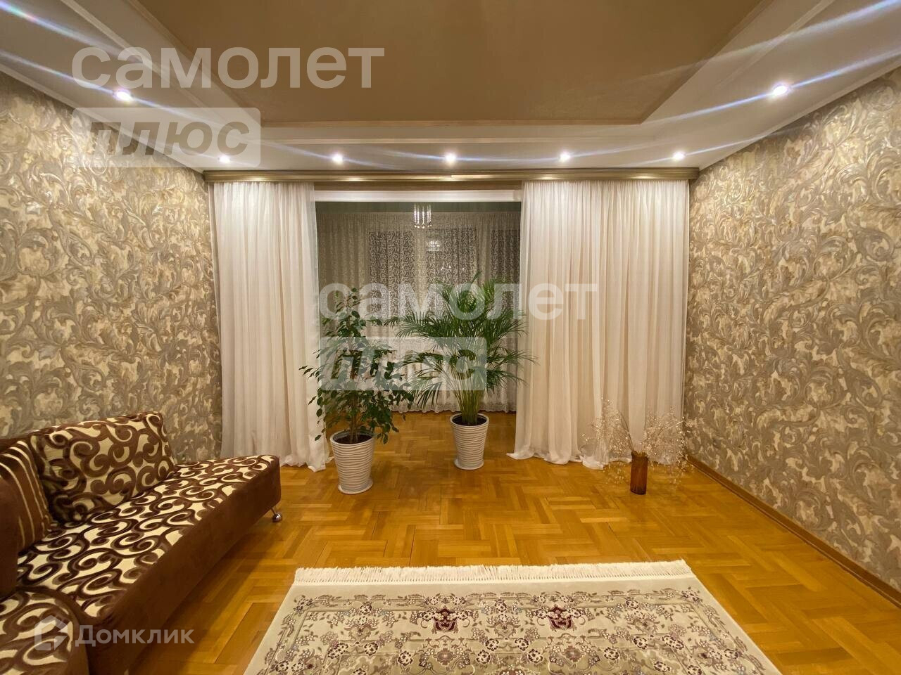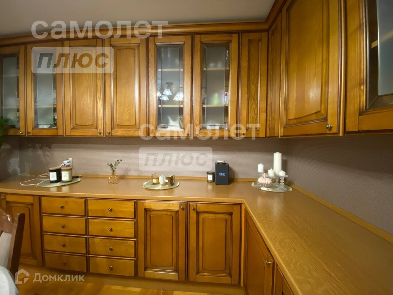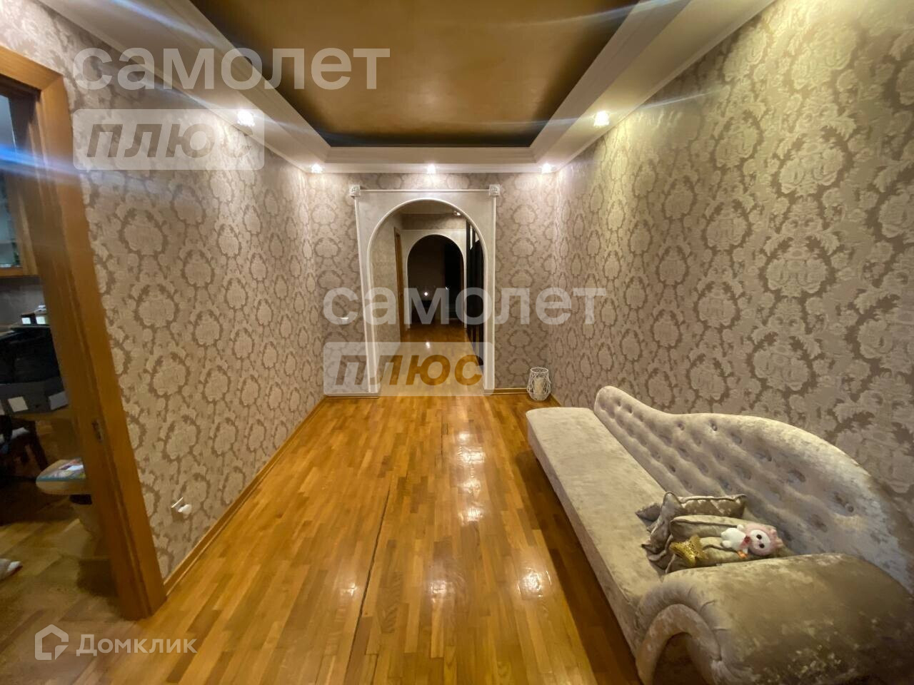 Квартира в идеальном состоянии: на полу постелен паркет, все стены выровнены, поклеены дорогие обои, все двери и кухонный гарнитур из натурального деревянного массива.