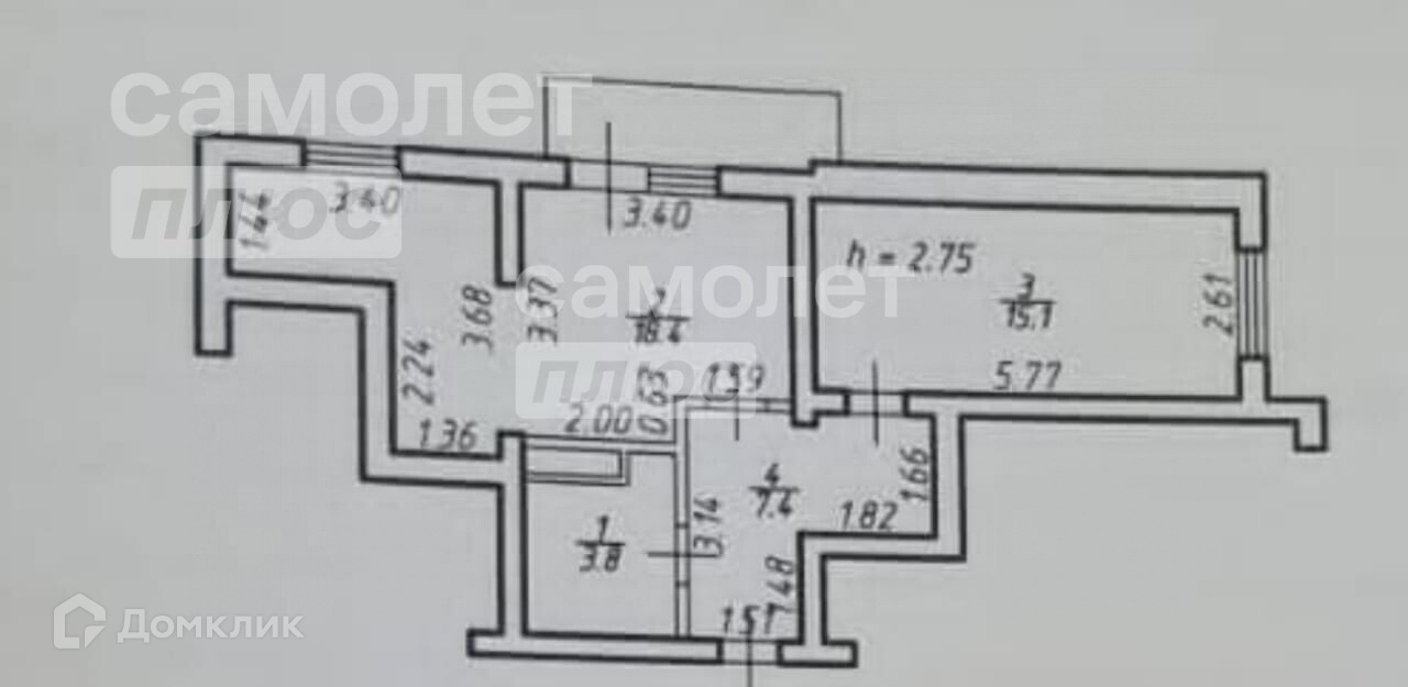 Высота потолков 2.7 м