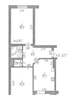 Площадь комнат (кв. м.): 14.90,16.40