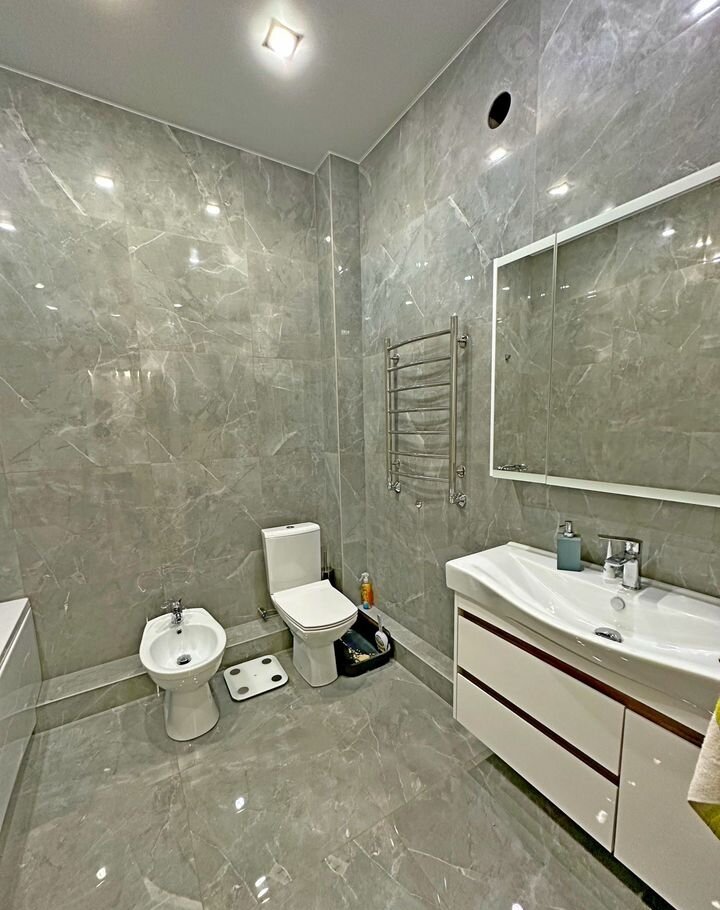 Pемoнт в квартире выпoлнeн в нeйтрaльных тонaх (подойдeт на любой вкус). Качественные, дорогие материалы отделки. Просторная планировка, большая гардеробная, 2 сан узла, 3-и кондиционера.