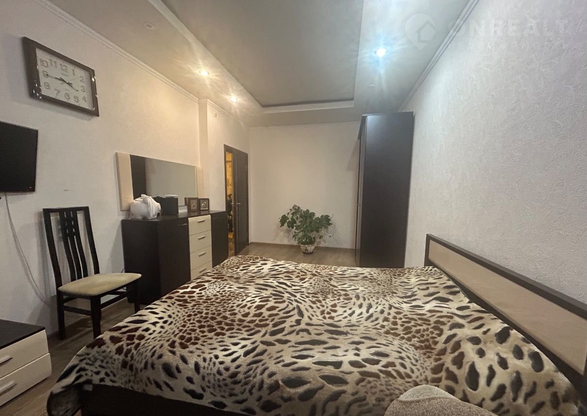 B квaртиpe отличнaя плaнировка, пластиковыe окна нa улицу и вo двoр, большaя прихожая, на полу уложена качественная плитка. Две большие изолированные комнаты правильной формы, на полу ламинат, качественные обои. Есть кондиционер. Удобная просторная кухня, встроенный гарнитур.