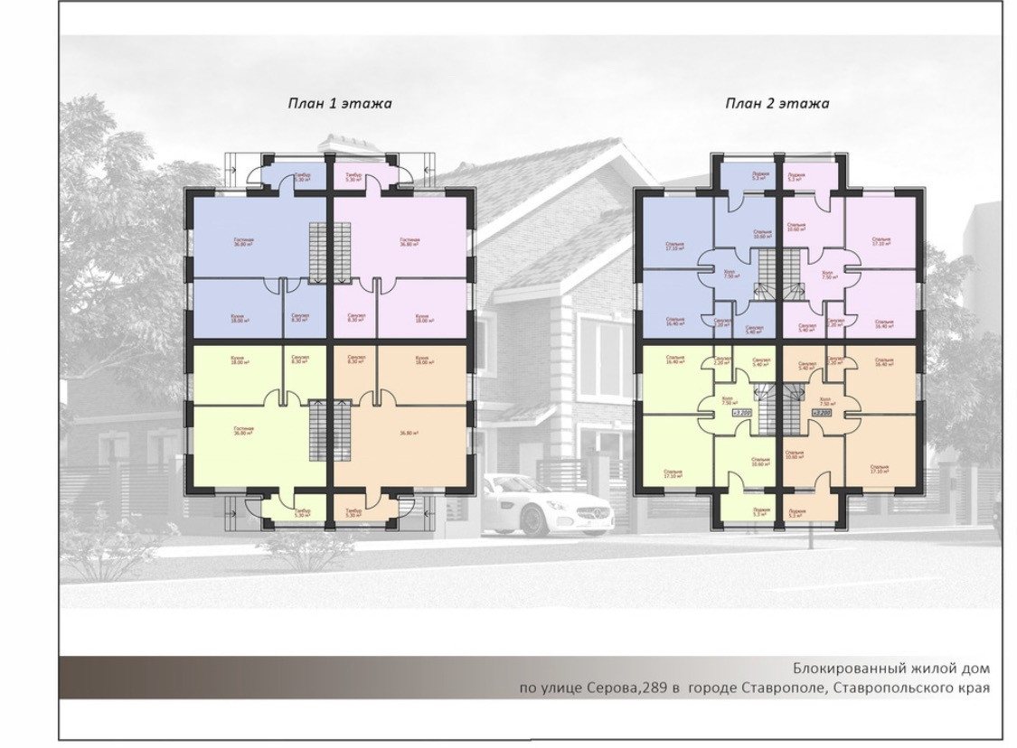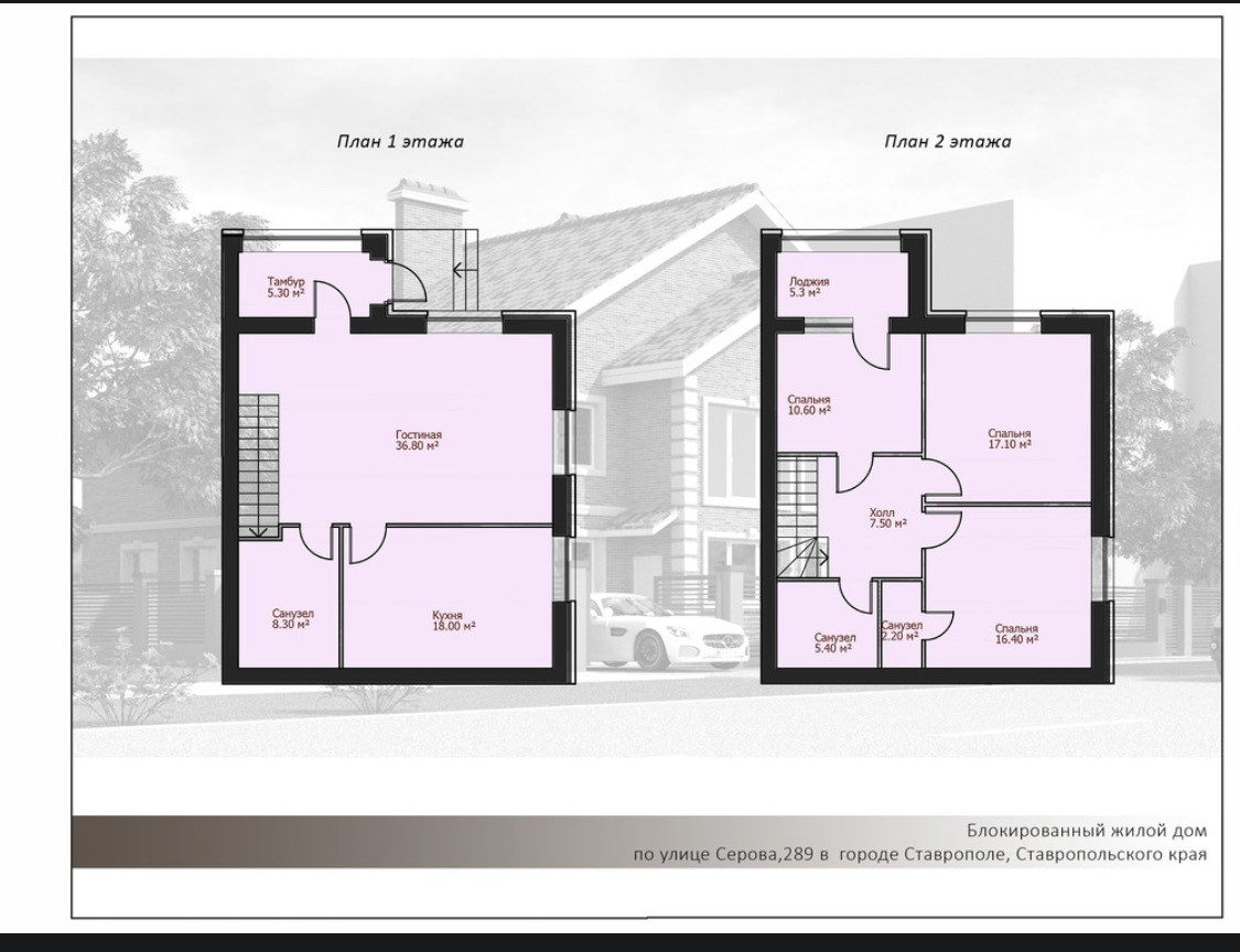 Таунхаус два этажа площадь одного 132.9 кв.м.