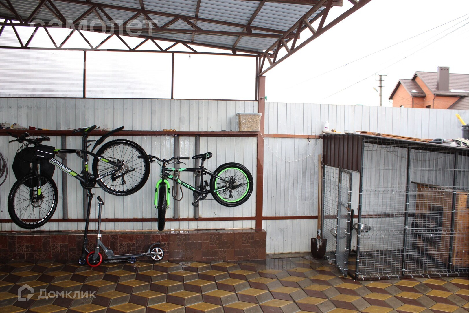 - капитальный навес над всем двором,помещаются 2 машины