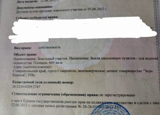 Продам земельный участок, 6 сот., садовое товарищество Зори Кавказа, 563А