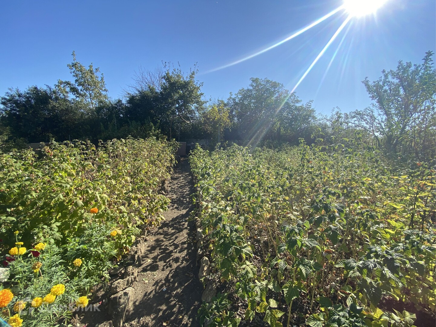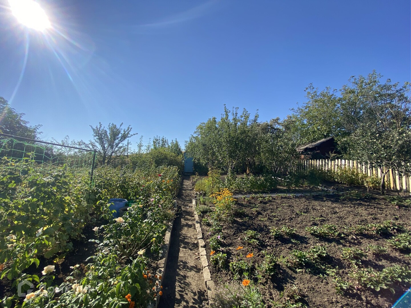 Вас удивит наличие ассортимента фруктовых деревьев, ягод, орехов. Полноценный сад - несколько сортов яблок, груша, слива, черешня, вишня, облепиха. Малина, смородина, ежевика, виноград и т.д. Всё ухожено - чистота и уют на участке!