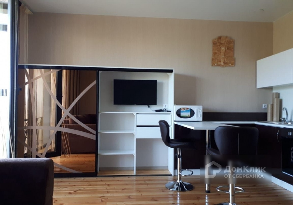 Сдается благоустроенная квартира-студия в ЖК Крона. В данном ЖК закрытая территория без машин, бесплатный Wi-Fi во дворе, круглосуточная охрана и видеонаблюдение. В наличии шикарный немецкий диван и вся необходимая бытовая техника - стиральная машина, холодильник, телевизор - smart-tv, духовой шкаф, вытяжка, встроенный фильтр для воды, микроволновая печь, пылесос.