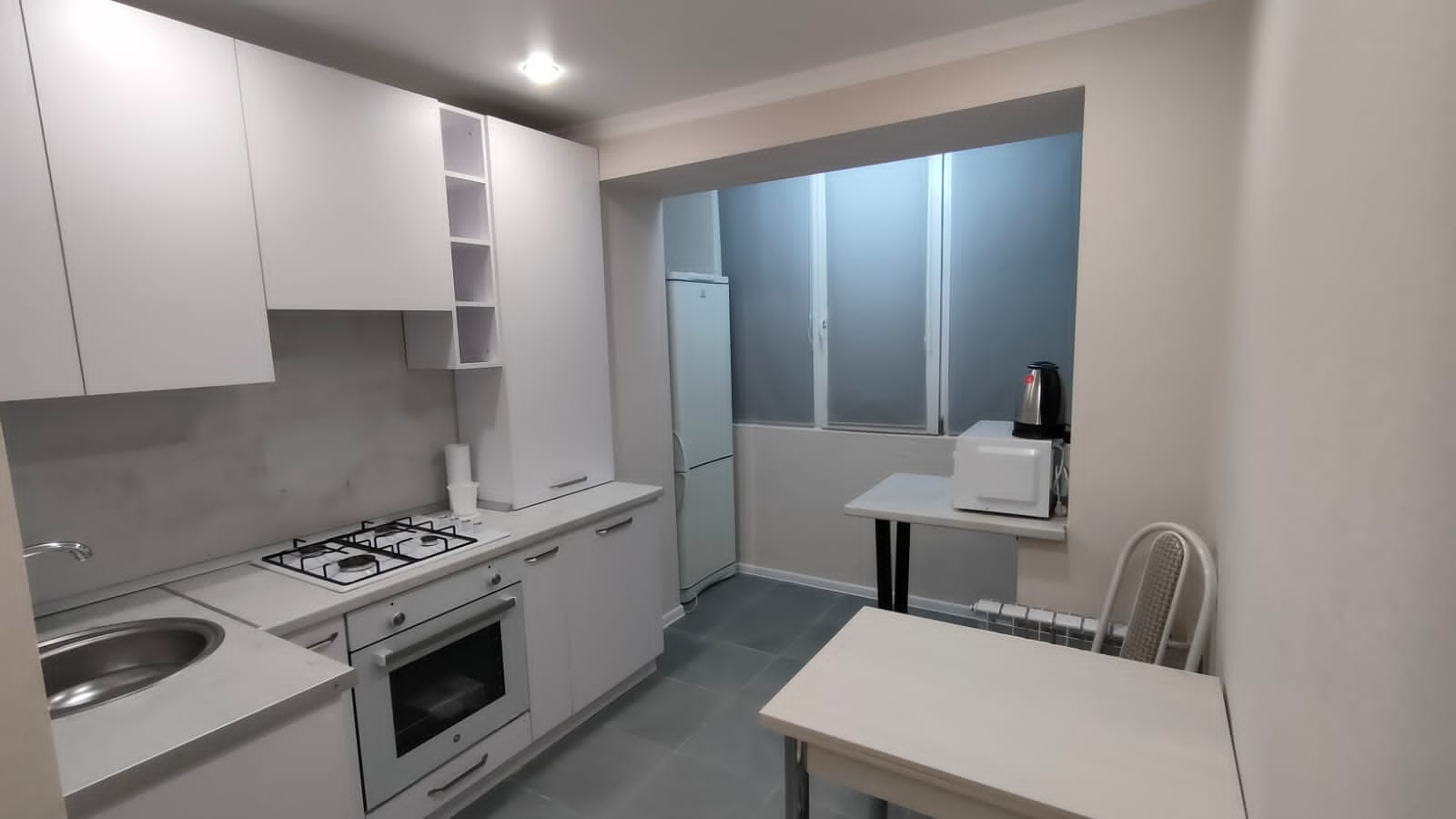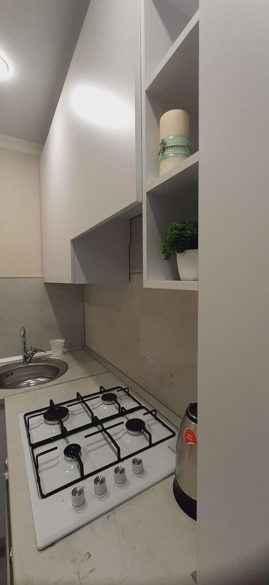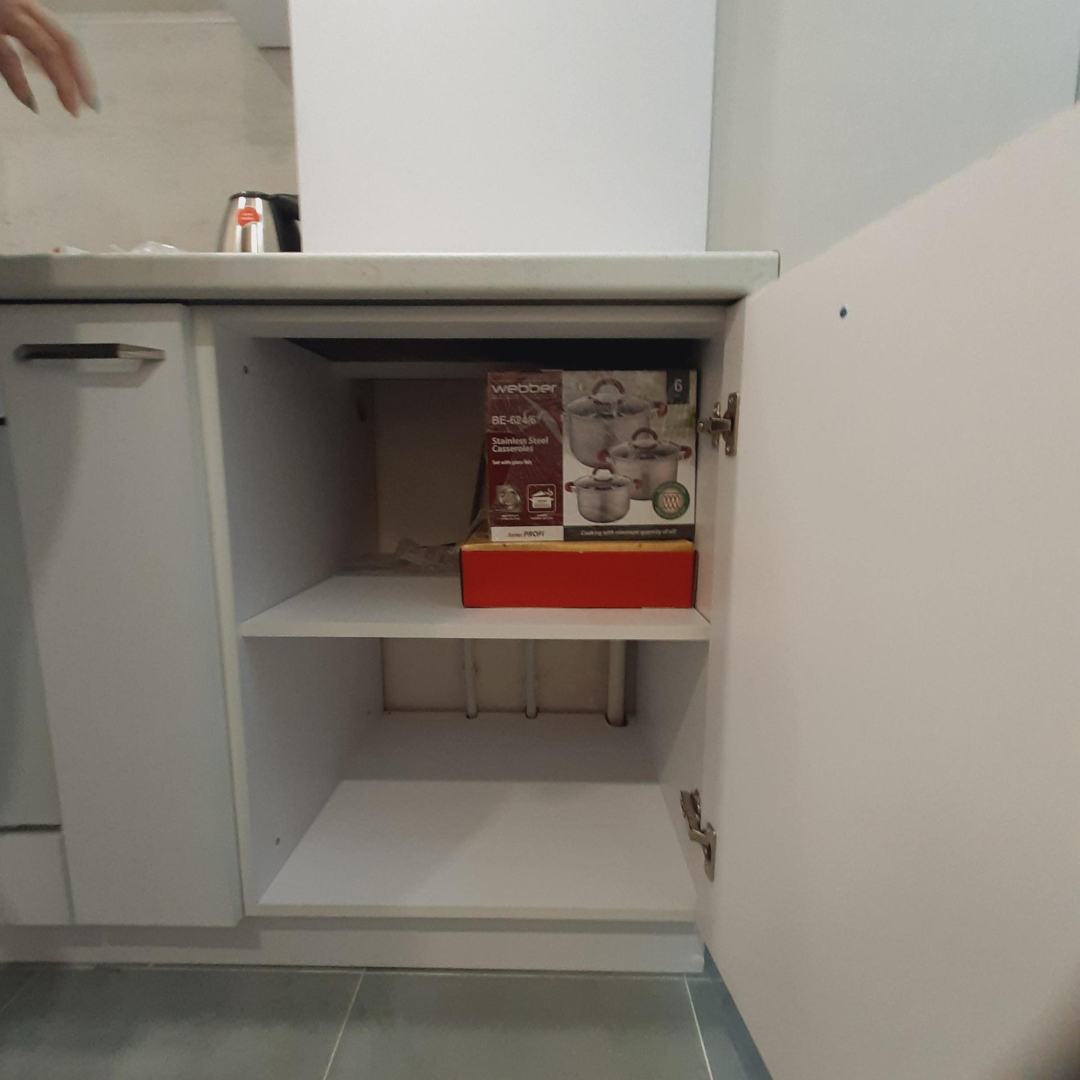 На кухне новые: вытяжка, колонка, духовой шкаф, плита, микроволновка, чайник, наборы посуды и дорогая кухонная утварь. Холодильник.