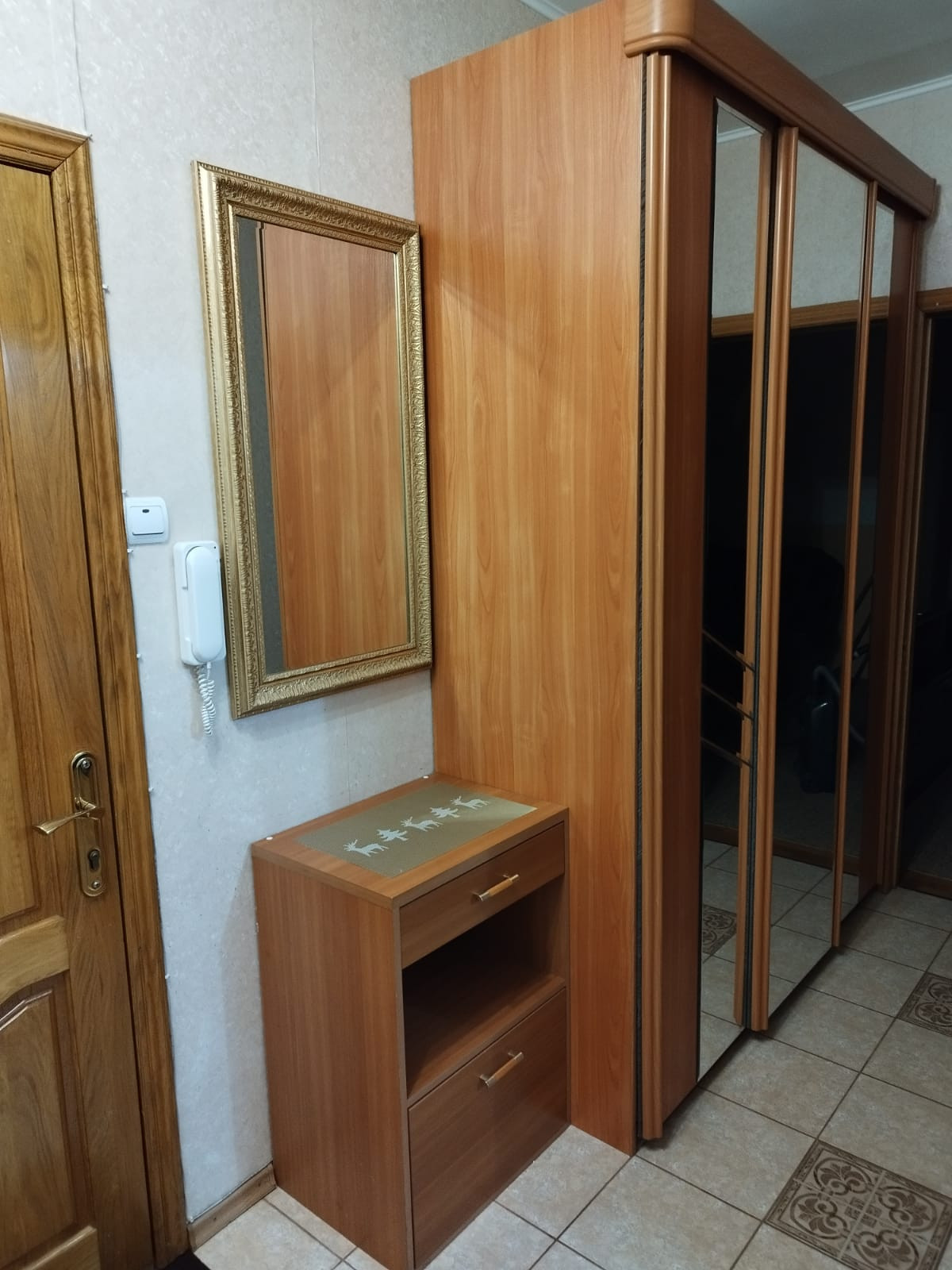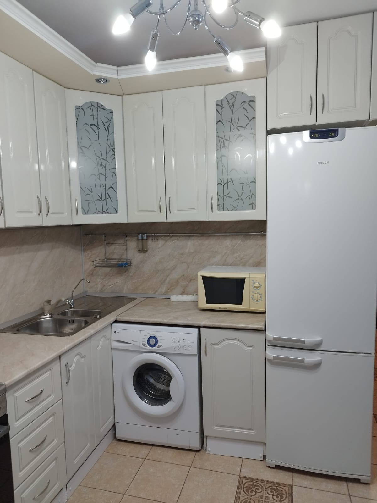 Из мебели - кухонный гарнитур, мягкая мебель, новая кровать, шкафы, стол, стулья. Вся бытовая техника.