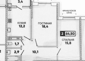 Сдается 2-ком. квартира, 61.4 м2, Российский проспект, 17