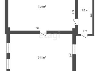 Общая площадь: 34.6 м2