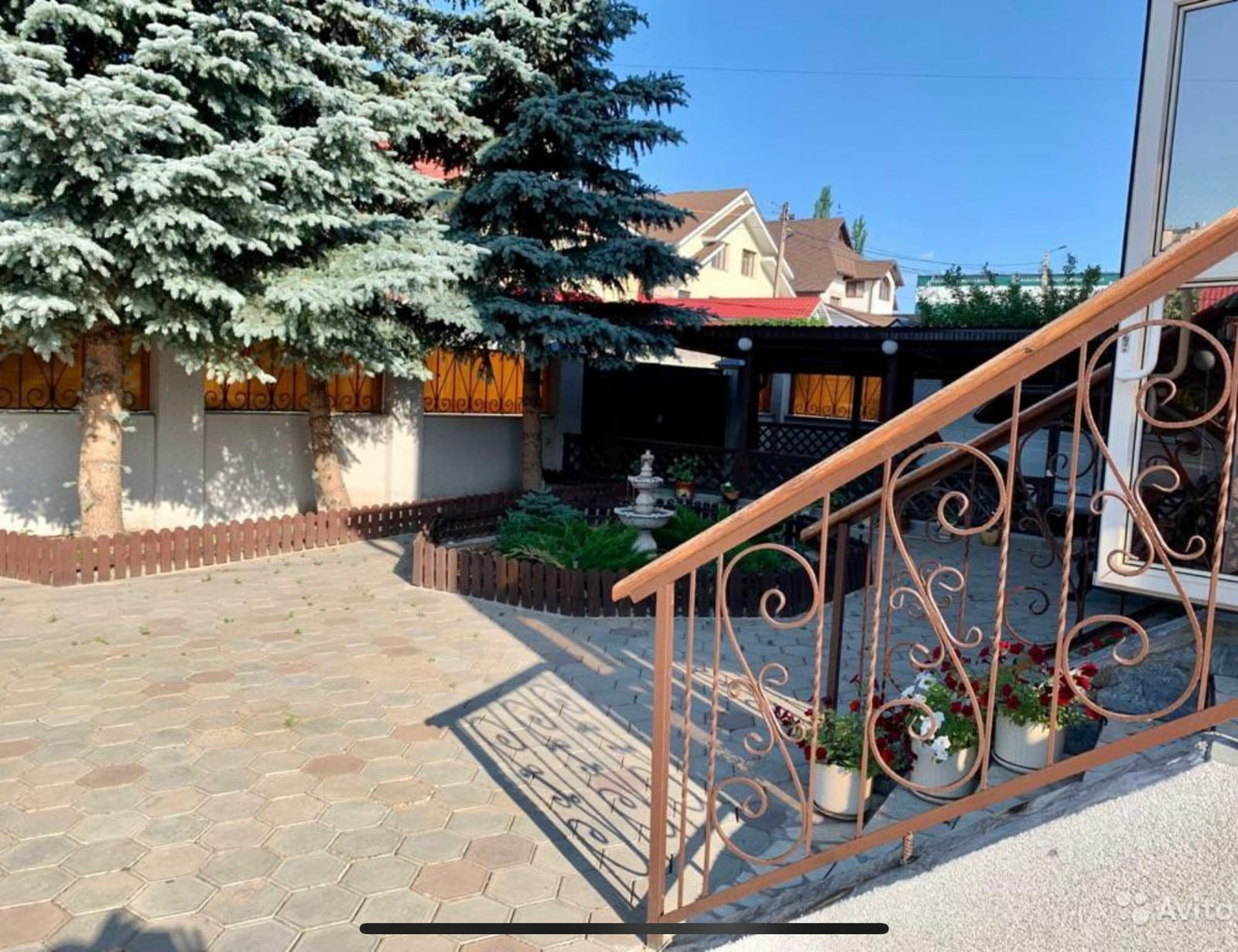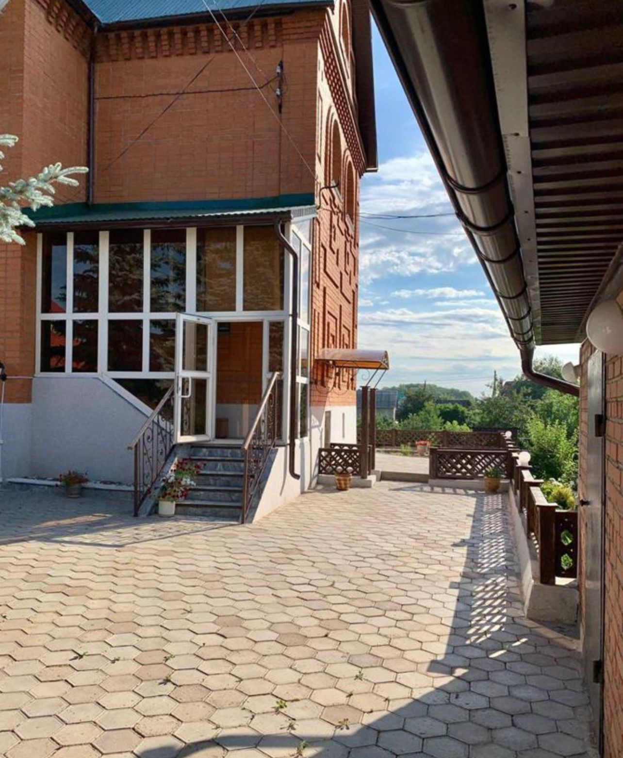 Во дворе выложена брусчатка, подъездные пути асфальтированы.