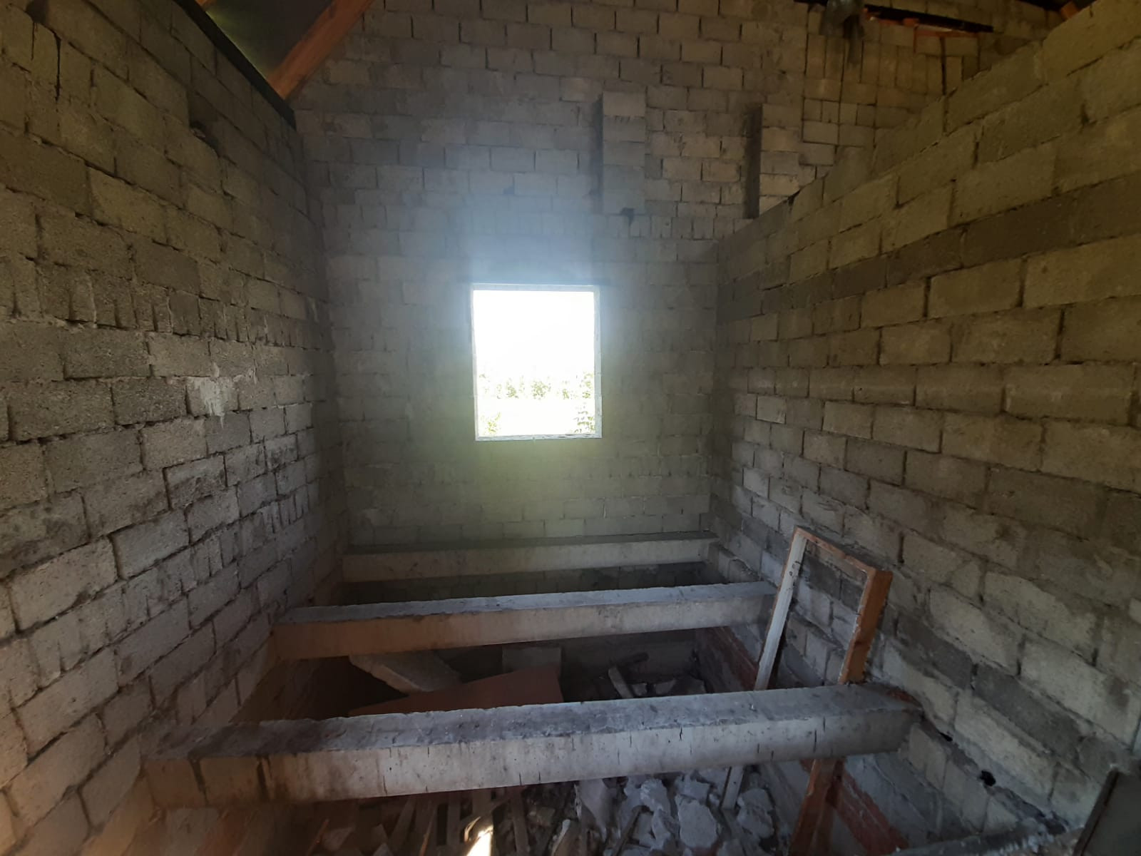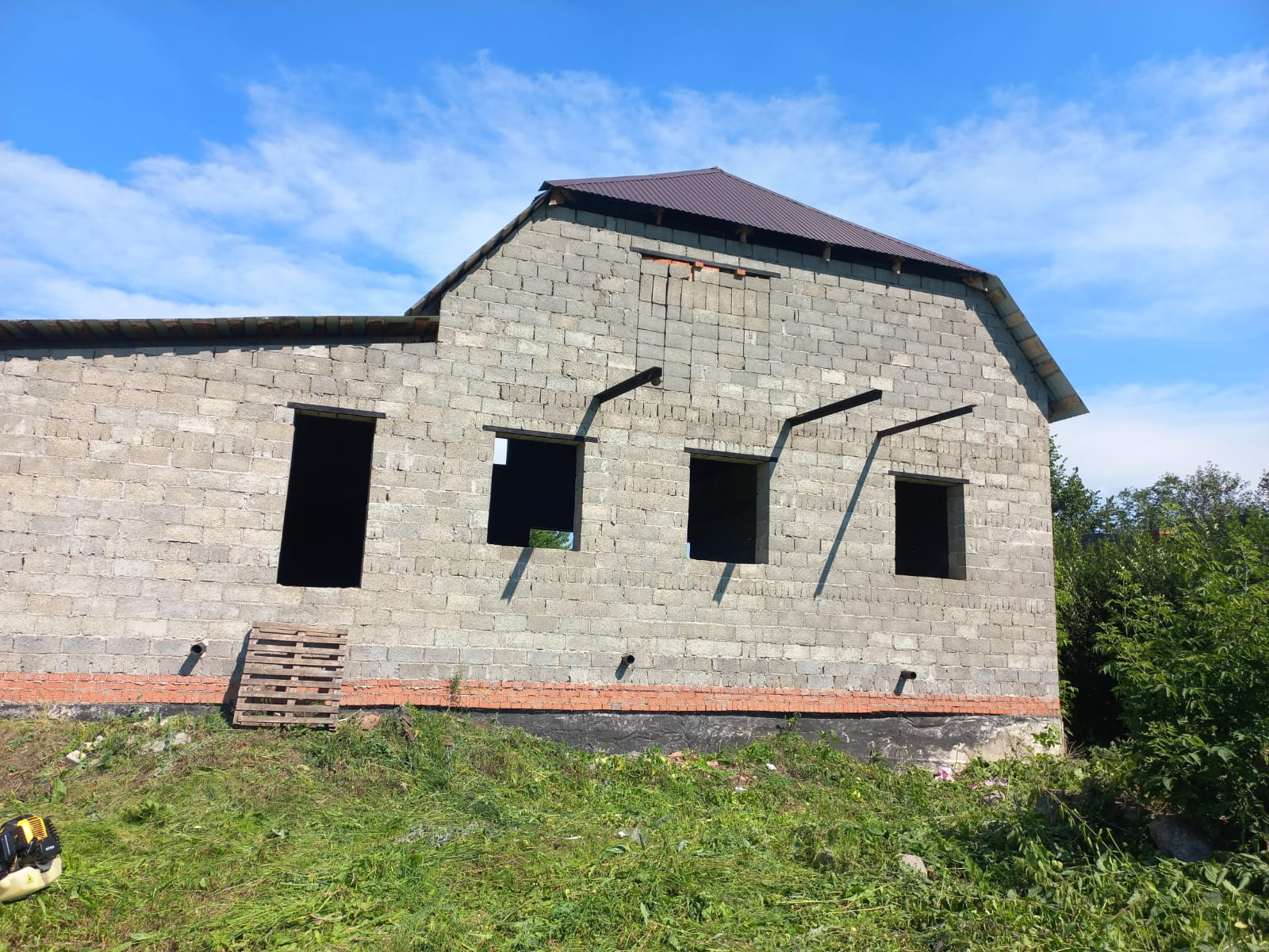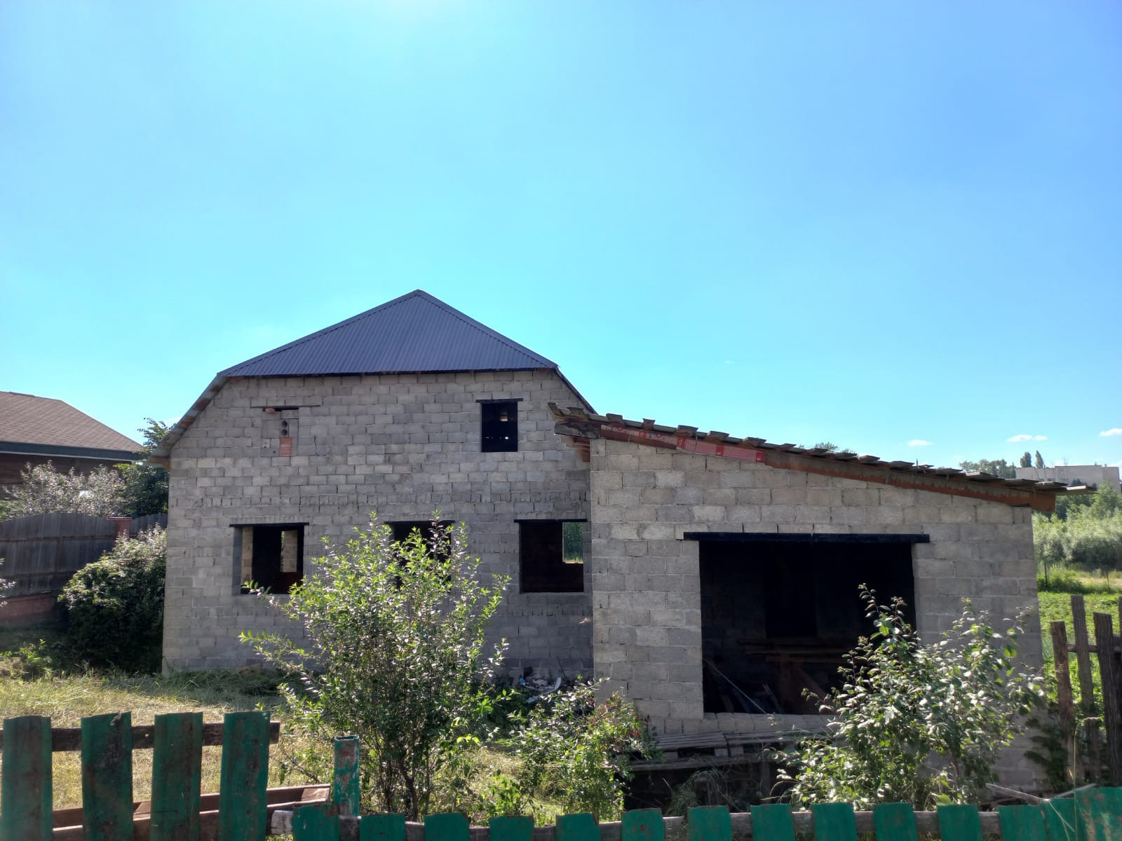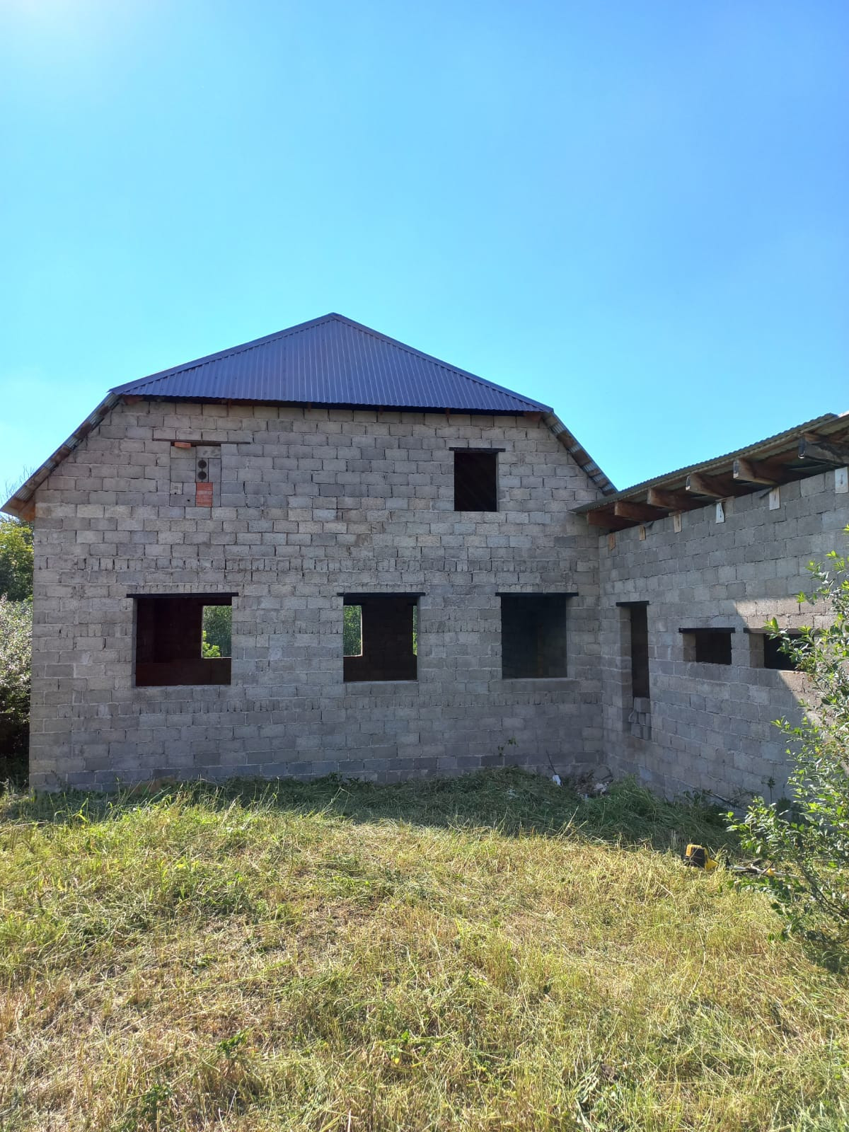 Объект незавершенного строительства, дом расположен вдоль центральной улицы, дорога открыта круглый год, в 100 метрах остановка маршрутного транспорта "Челюскина", городской пляж, Колхозный рынок в 5 минутах езды, все коммуникации проложены напротив участка(можно подключить газ,электричество, воду и канализацию). Участок  квадратной формы, задняя часть участка выходит на сторону реки Ашкадар. Дом построен из шлакоблоков, крыша закрыта профнастилом, фундамент ленточно-заливной, внутренней отделки нет, планировка свободная.