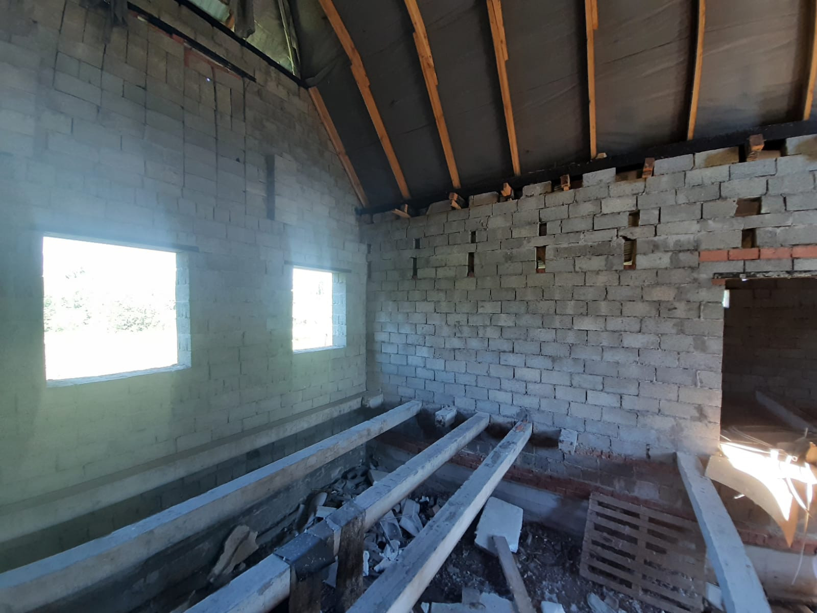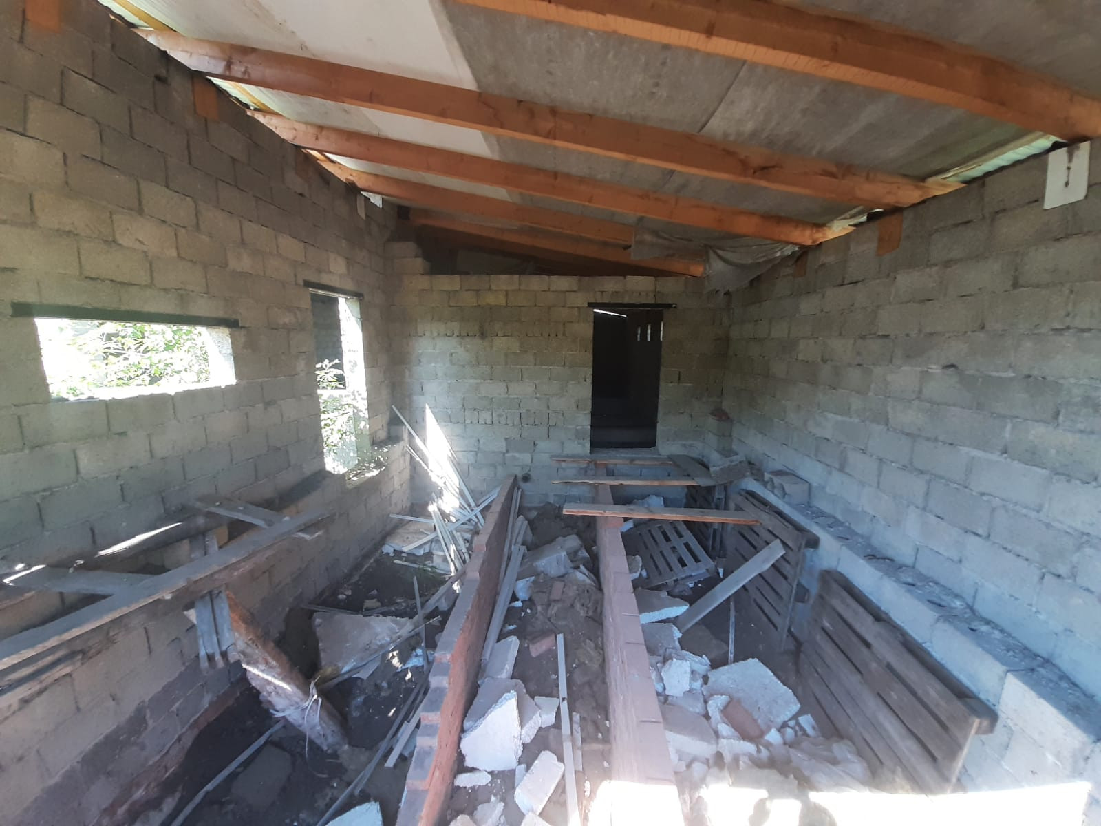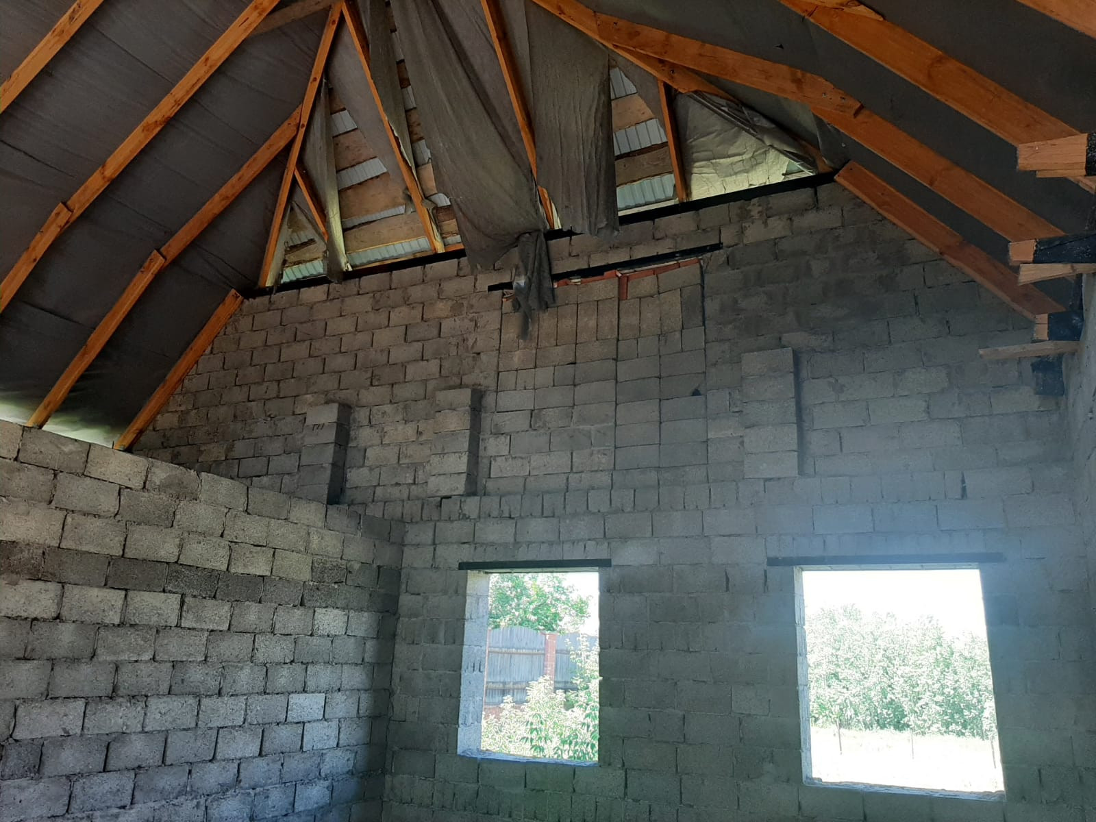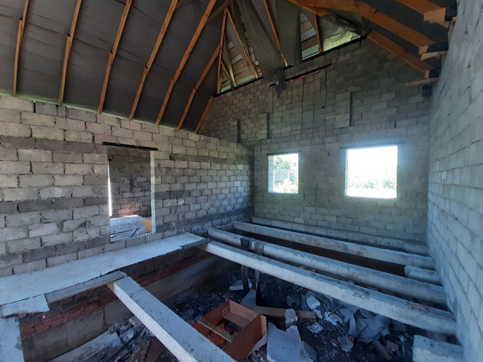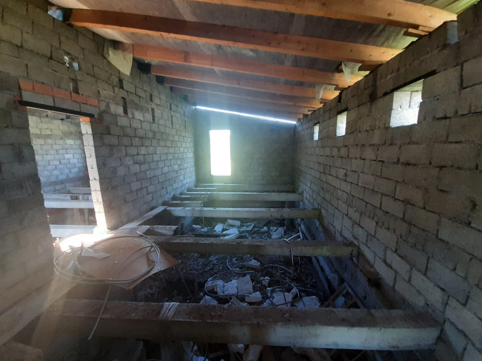 Объект незавершенного строительства, дом расположен вдоль центральной улицы, дорога открыта круглый год, в 100 метрах остановка маршрутного транспорта "Челюскина", городской пляж, Колхозный рынок в 5 минутах езды, все коммуникации проложены напротив участка(можно подключить газ,электричество, воду и канализацию). Участок  квадратной формы, задняя часть участка выходит на сторону реки Ашкадар. Дом построен из шлакоблоков, крыша закрыта профнастилом, фундамент ленточно-заливной, внутренней отделки нет, планировка свободная.
