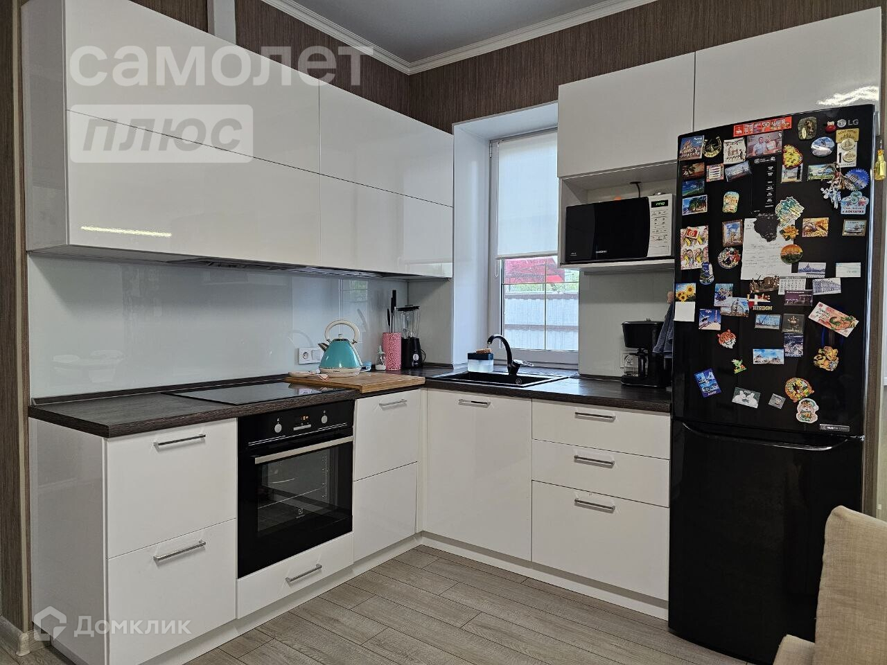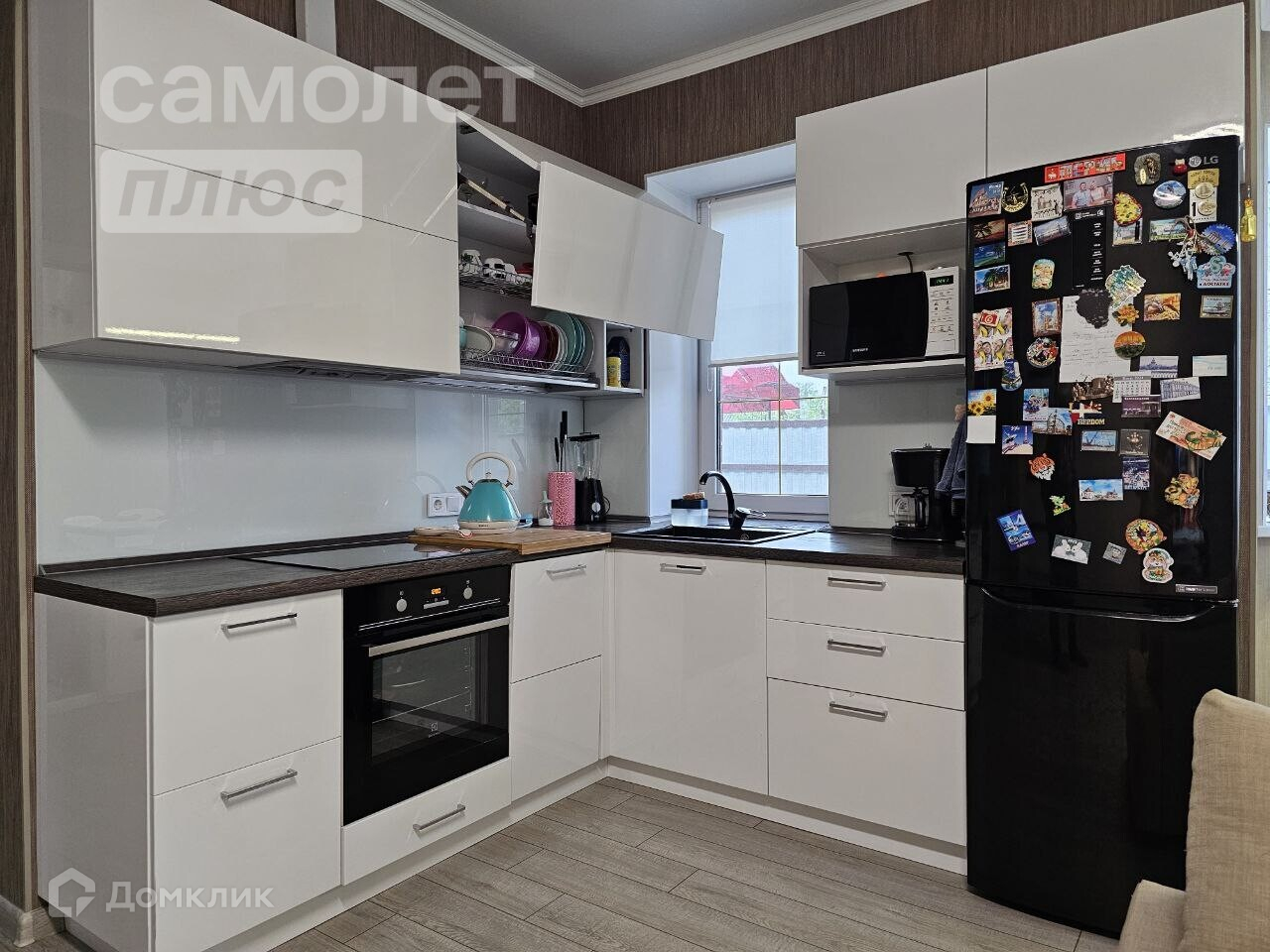 Встроенный кухонный гарнитур, на всех дверях доводчики., мойка искусственный гранит фирмы Оmоikiri Dаisеn.