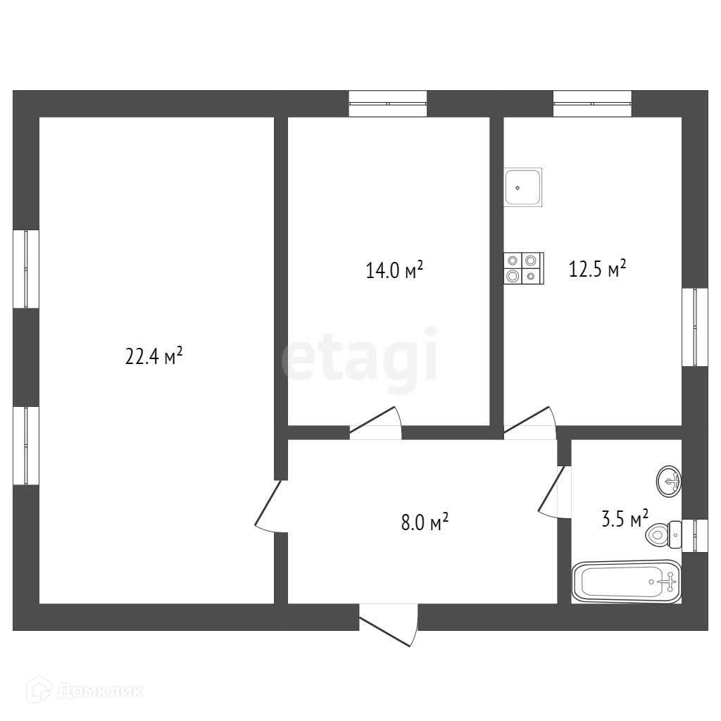 Общая площадь 60.4 м2