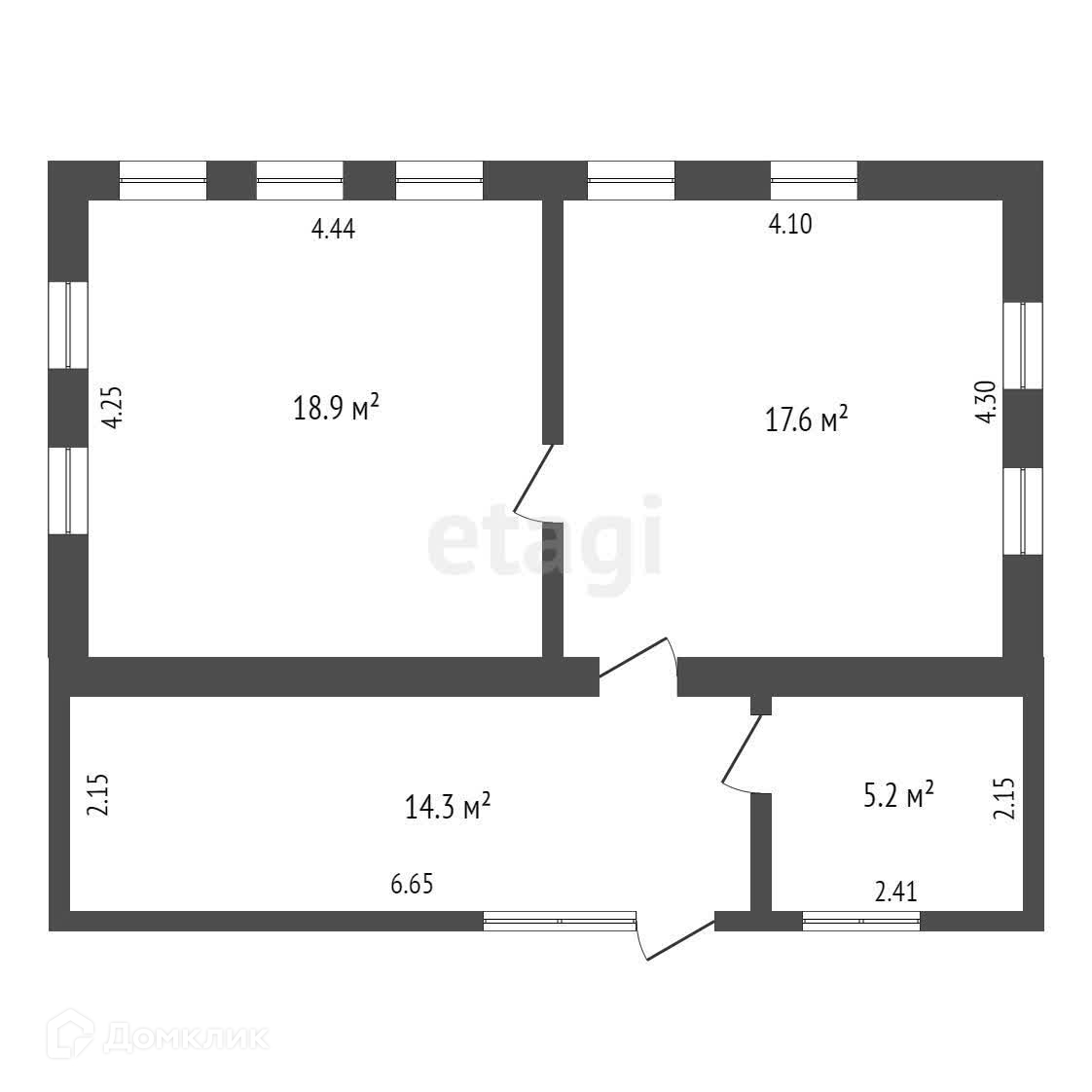 Общая площадь 36.5 м2