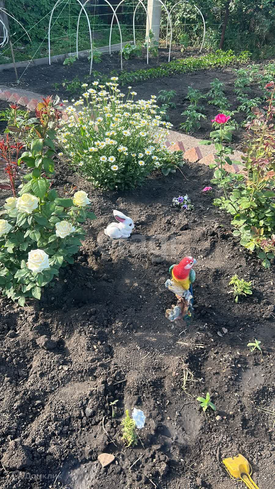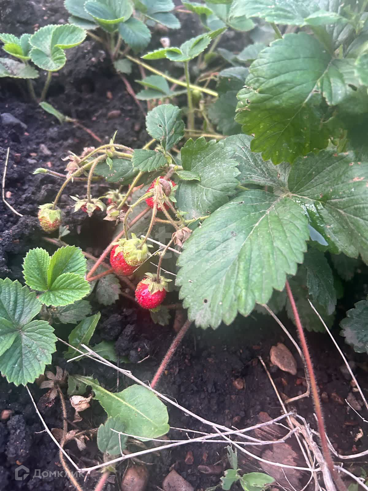 На участке много насаждений: земляника, смородина, яблоня, земля ухоженная и плодородная.