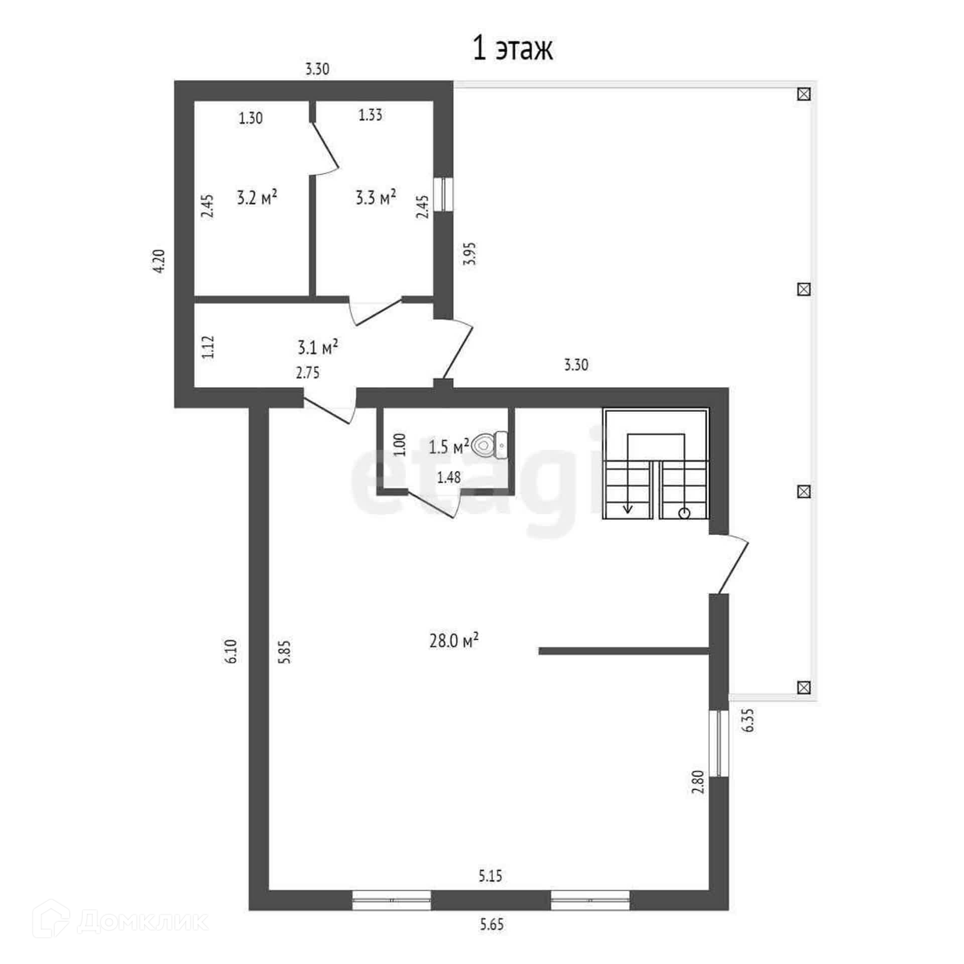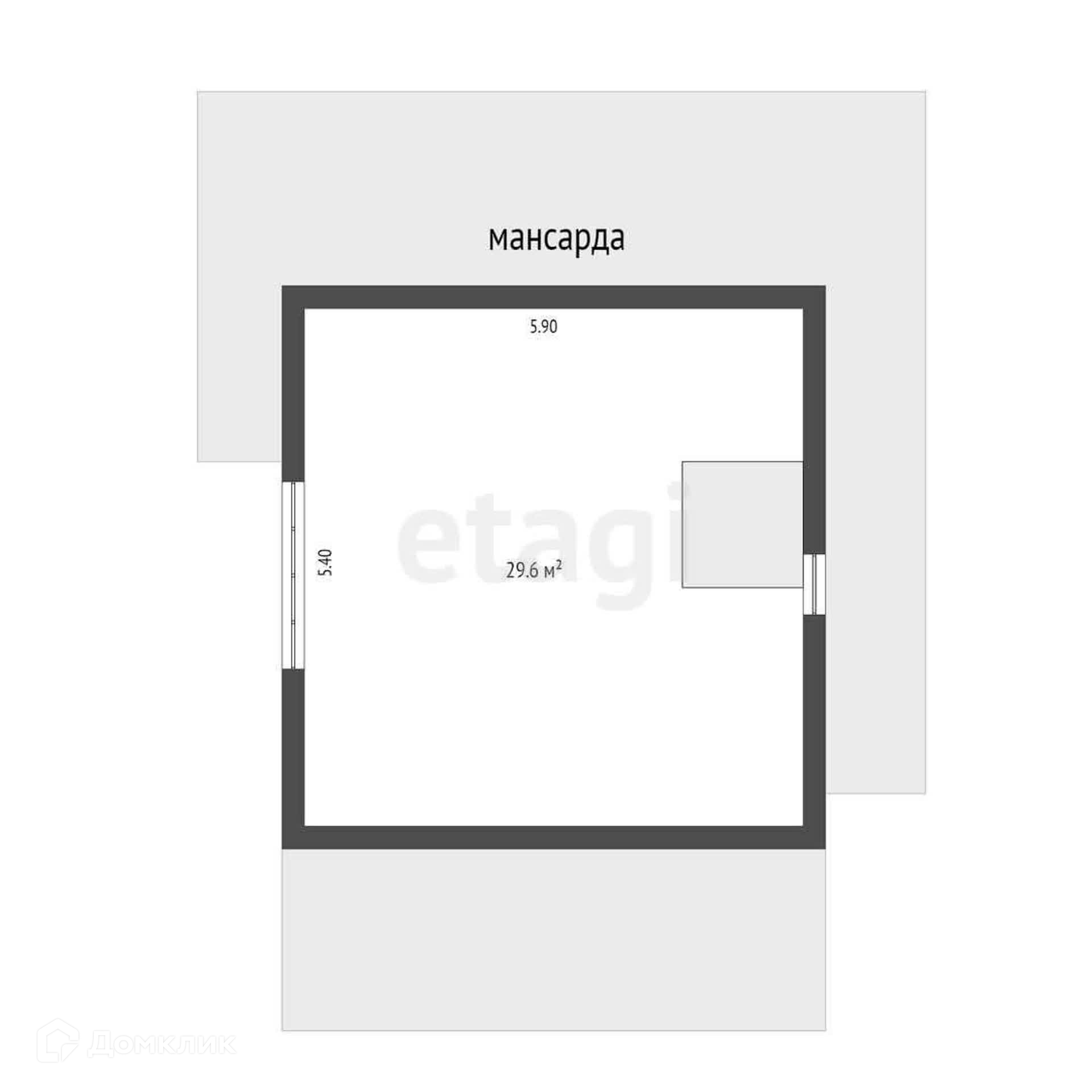 На мансардном этаже одна общая комната 29,6 м2