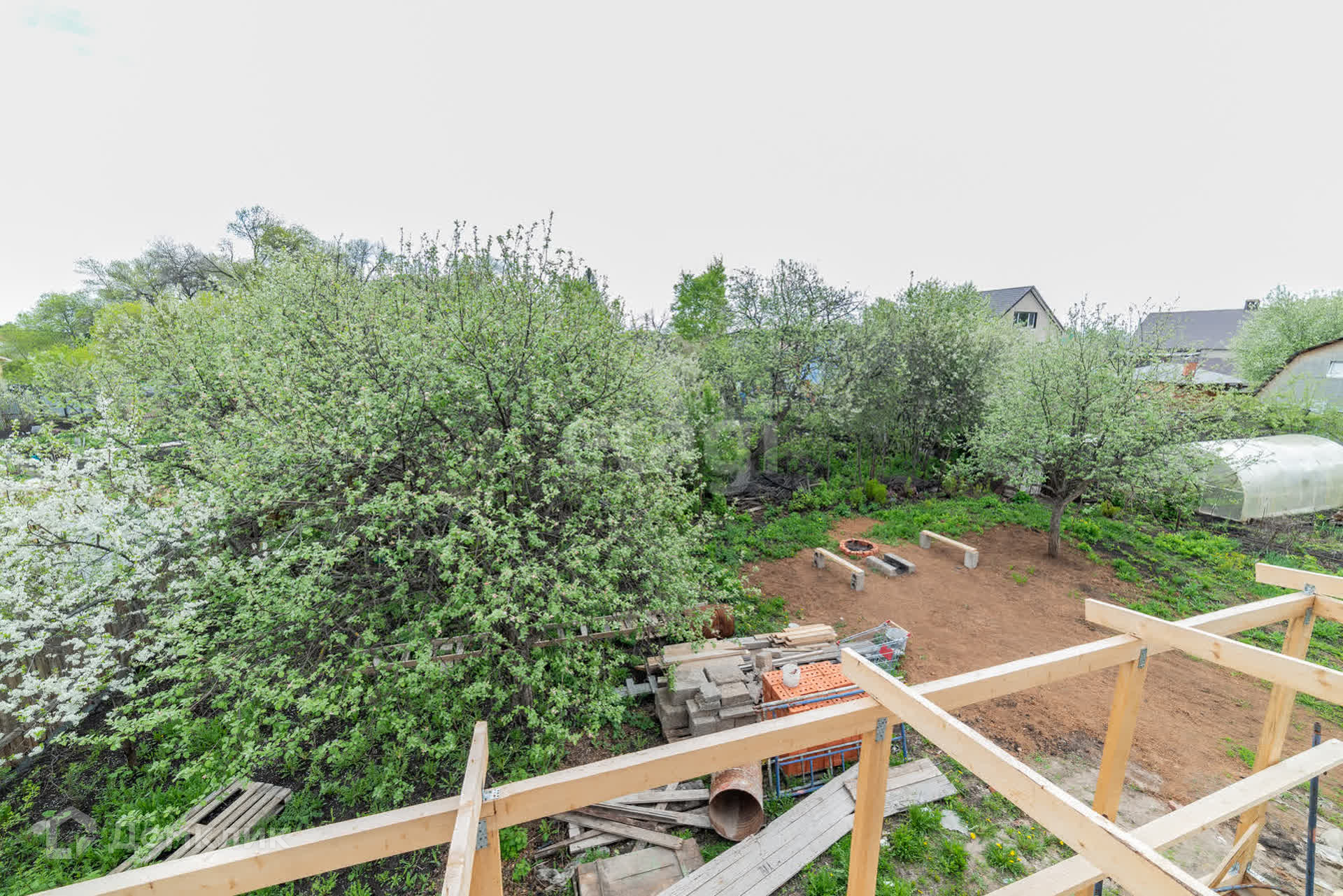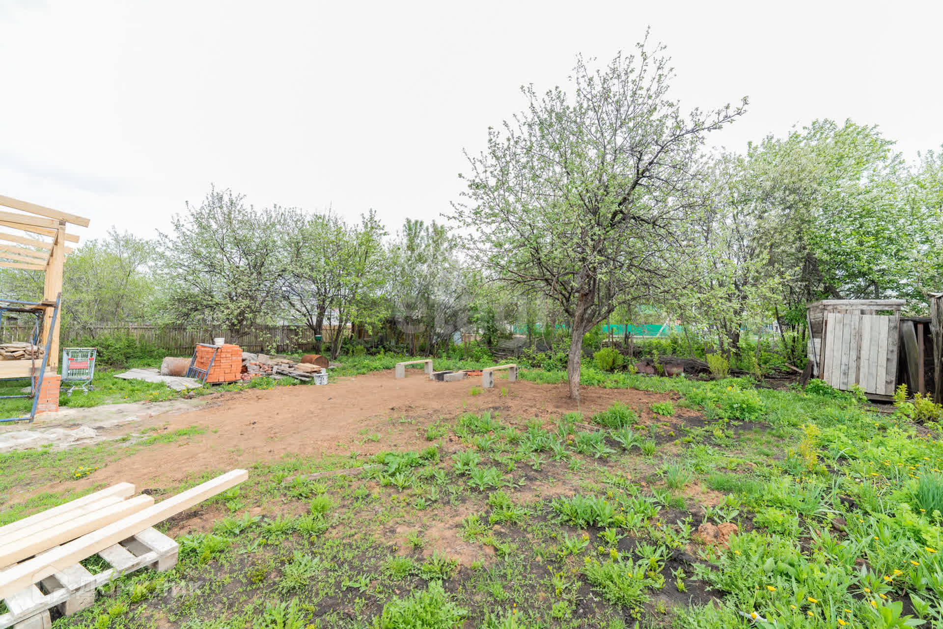 Земля разработана, на участке есть яблоня.