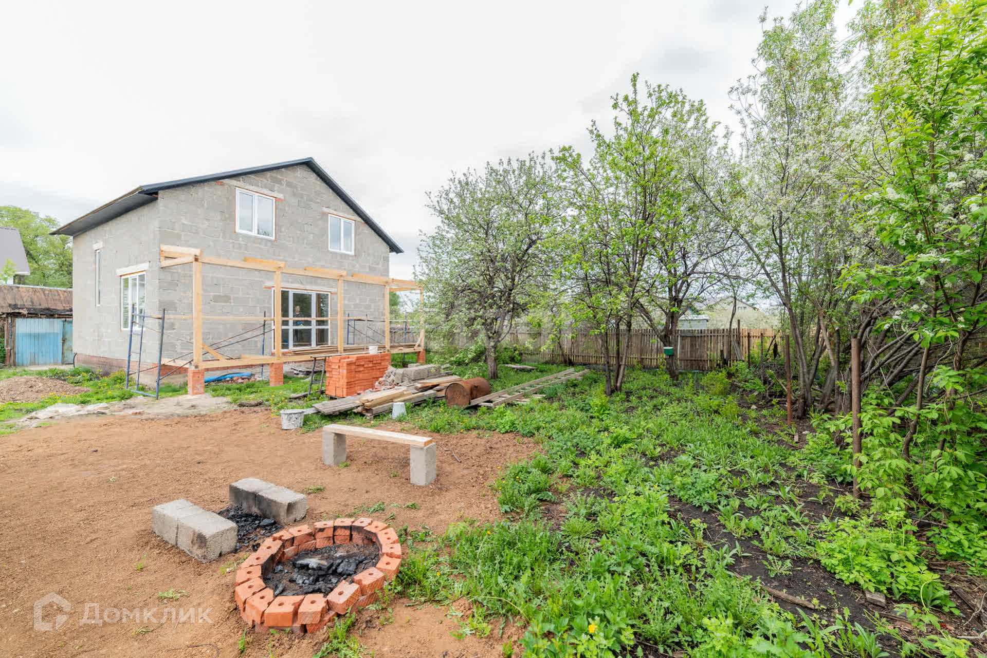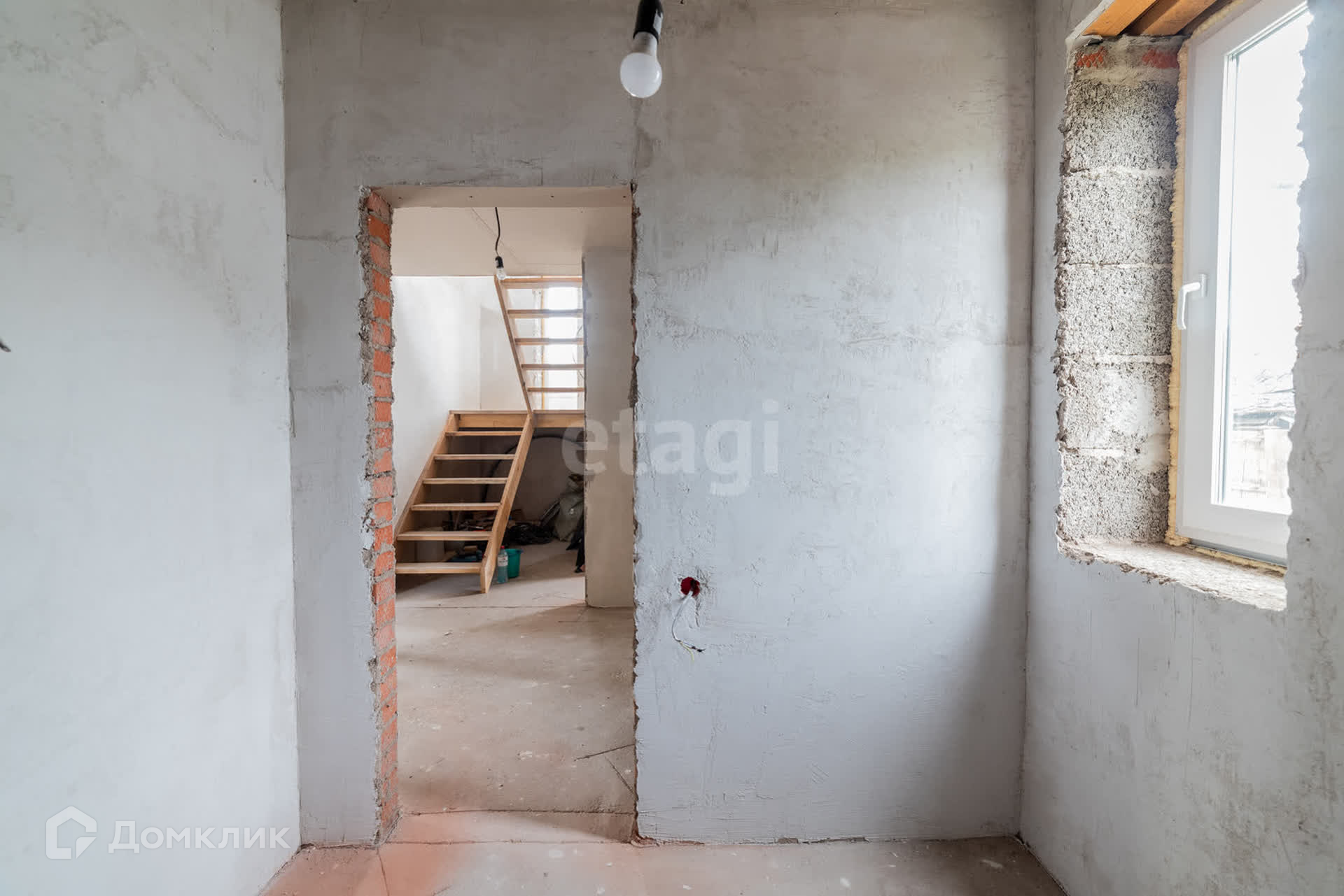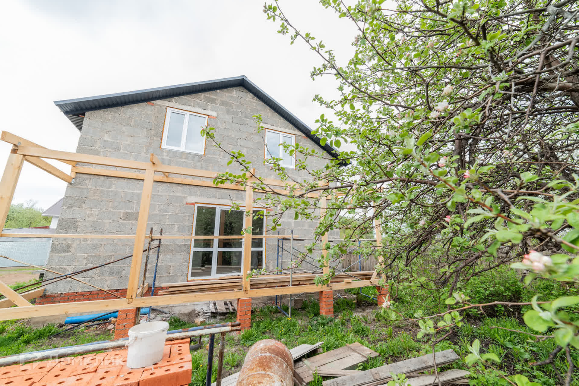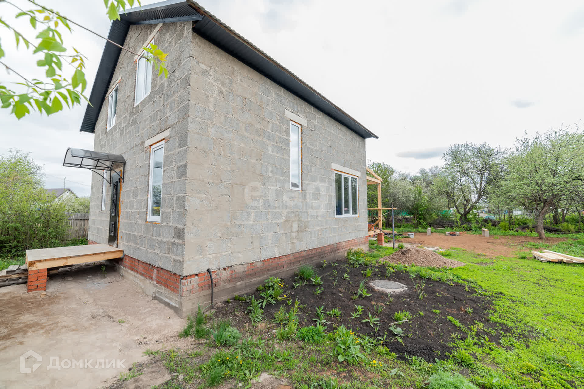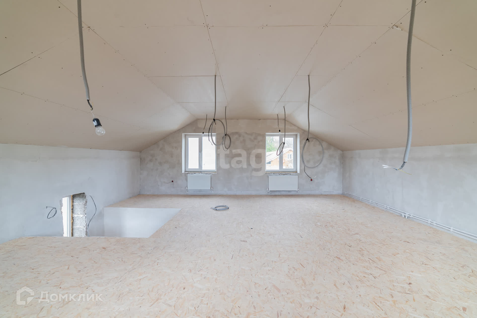 Дом построен из арболита толщиной 40 см, на полу сухая стяжка, полы ровные, потолок везде обшит гипсокартоном, во всем доме установлены пластиковые окна, выход на террасу дома из кухни-гостиной, где установлены панорамные окна, благодаря чему в доме много света.