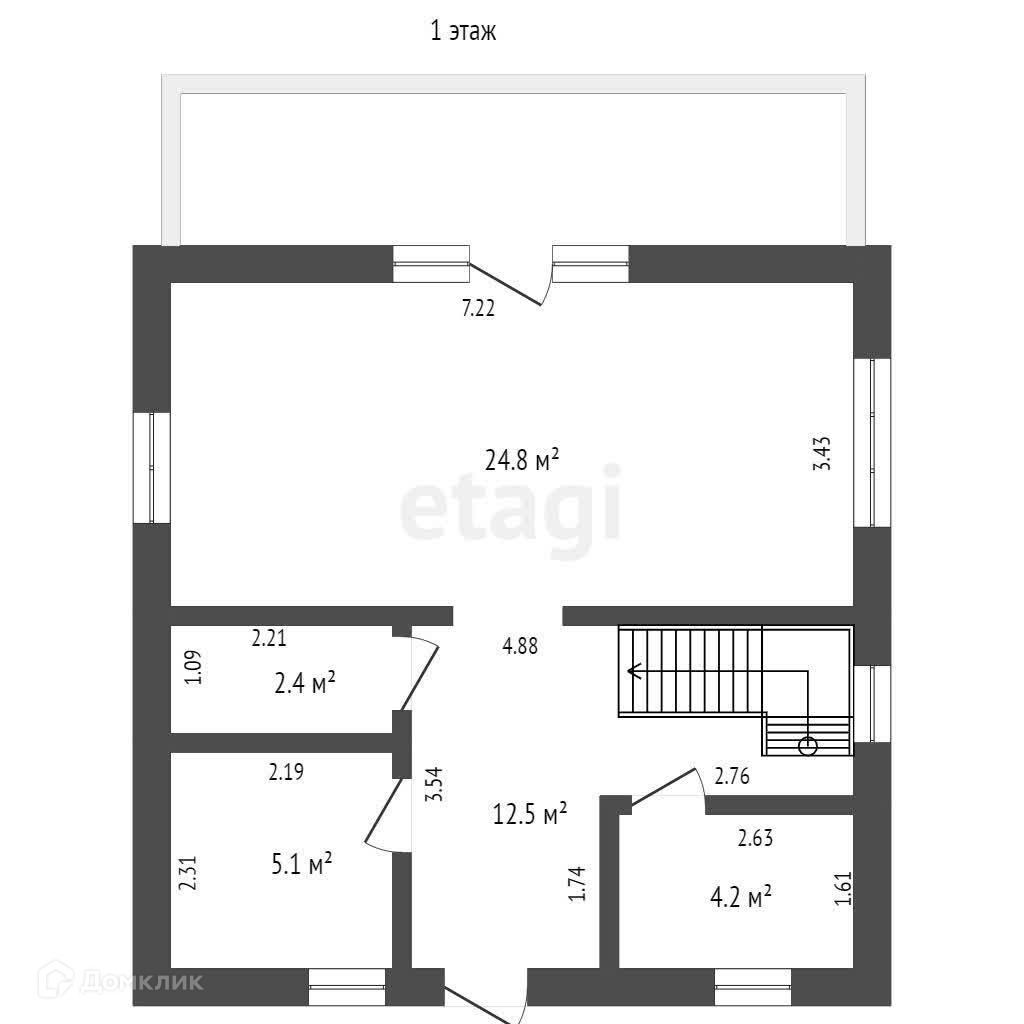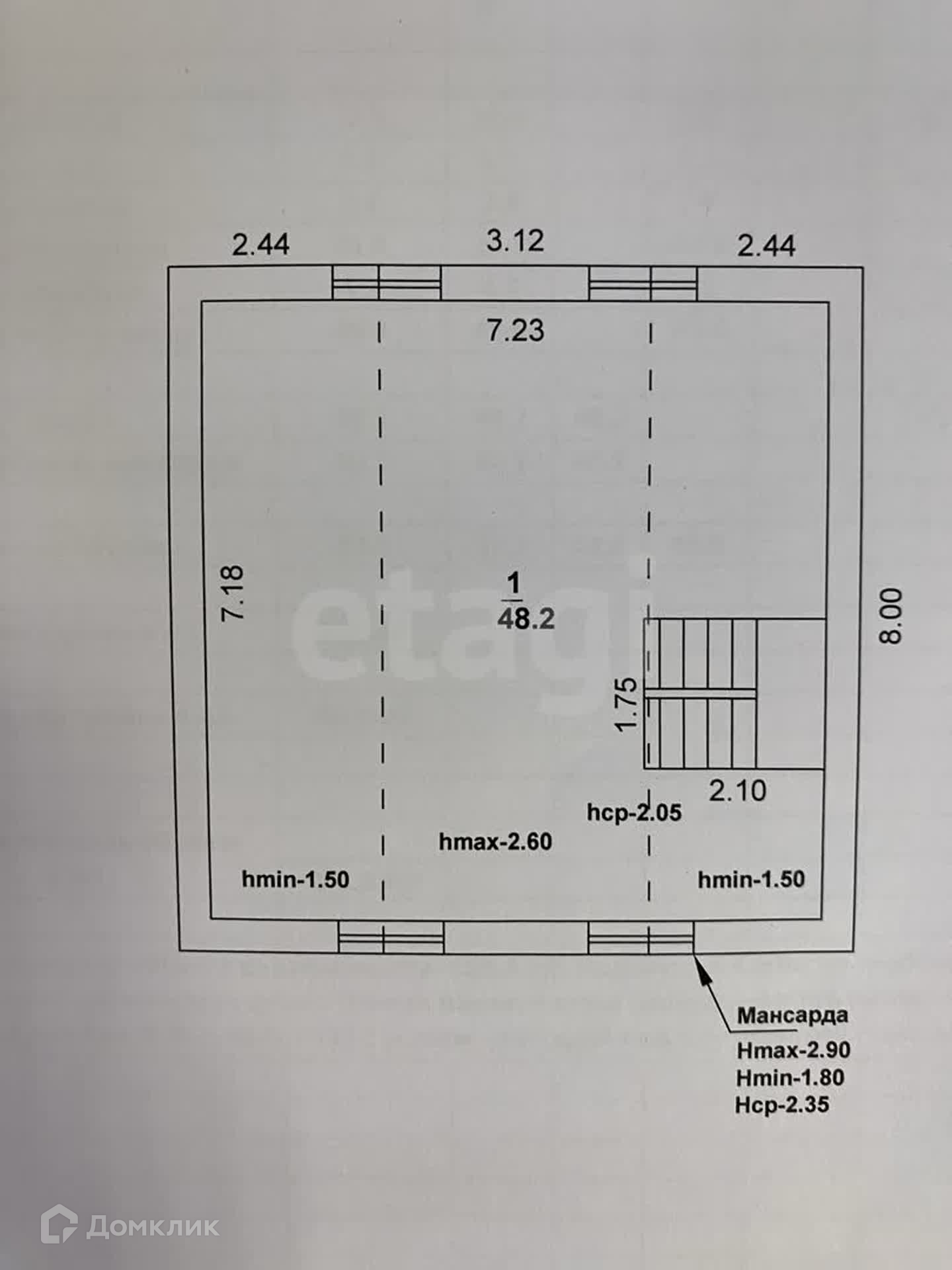 2-й этаж свободной планировки общей площадью 48,2 кв.м. Можно разделить на 3 или 4 спальные комнаты.