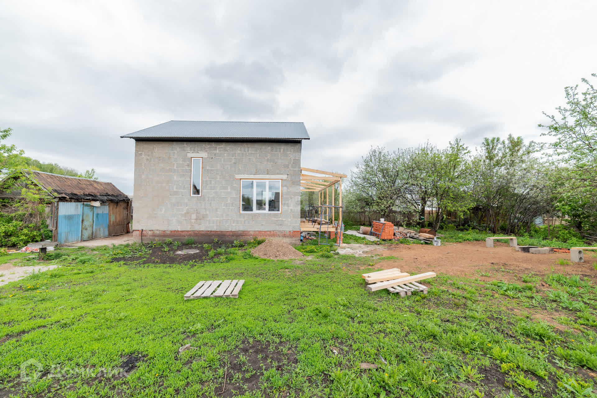 На земельном участке общей площадью 6,32 сотки кроме дома располагается хозблок.