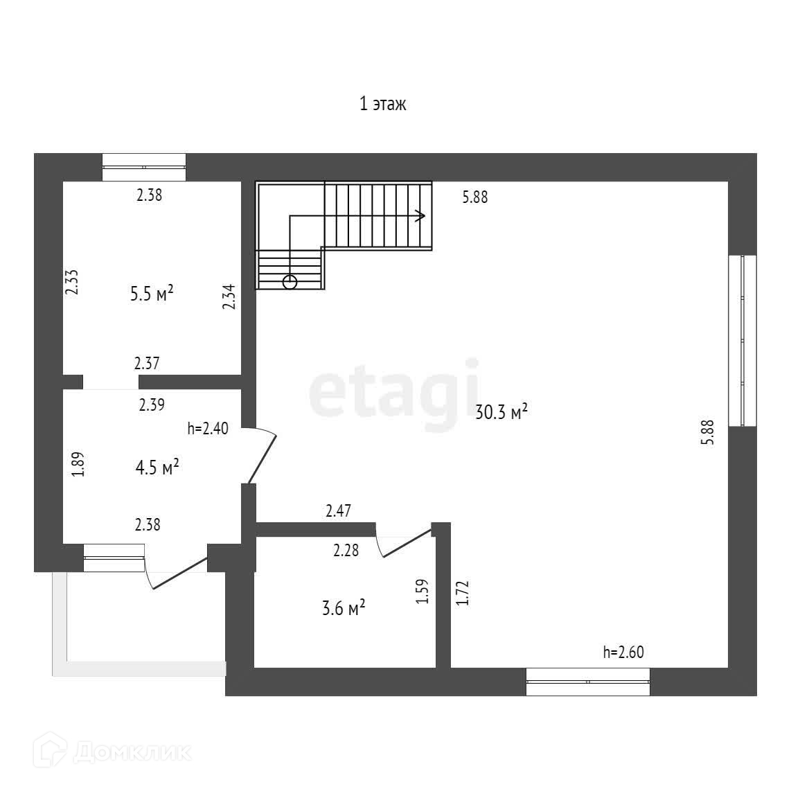 Общая площадь 55 м2