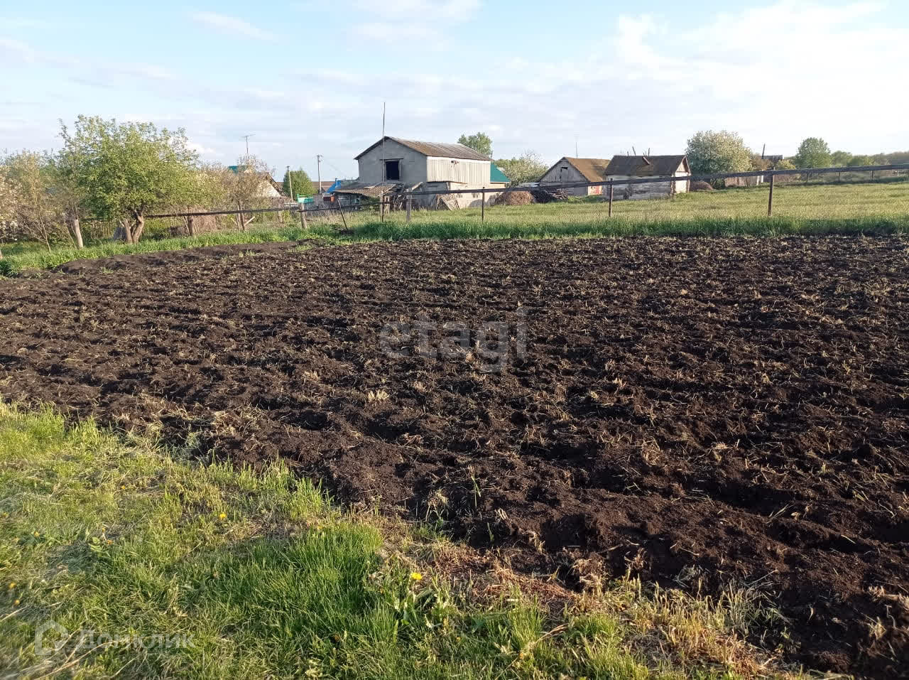 Участок размером 50 соток, правильной прямоугольной формы, имеется из дополнительных построек - баня, гараж, сарай.
