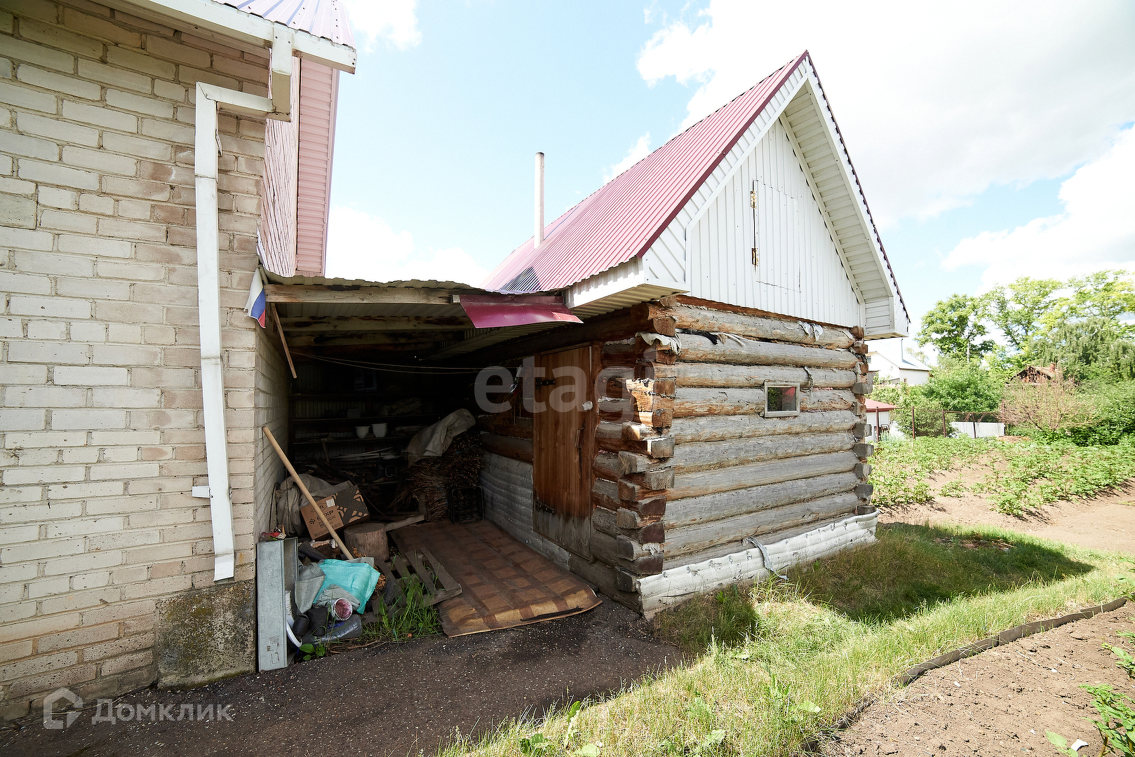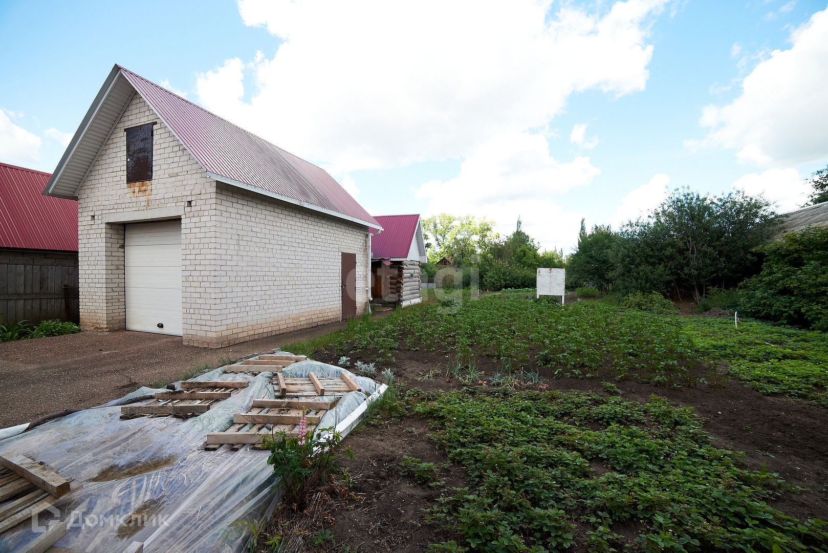 На участке имеется баня и гараж, а также садовый участок с плодово-ягодными насаждениями.