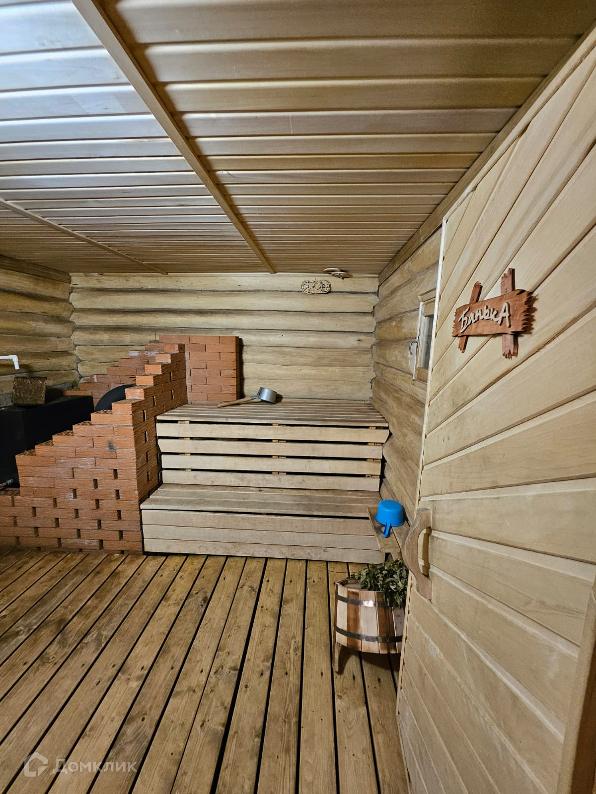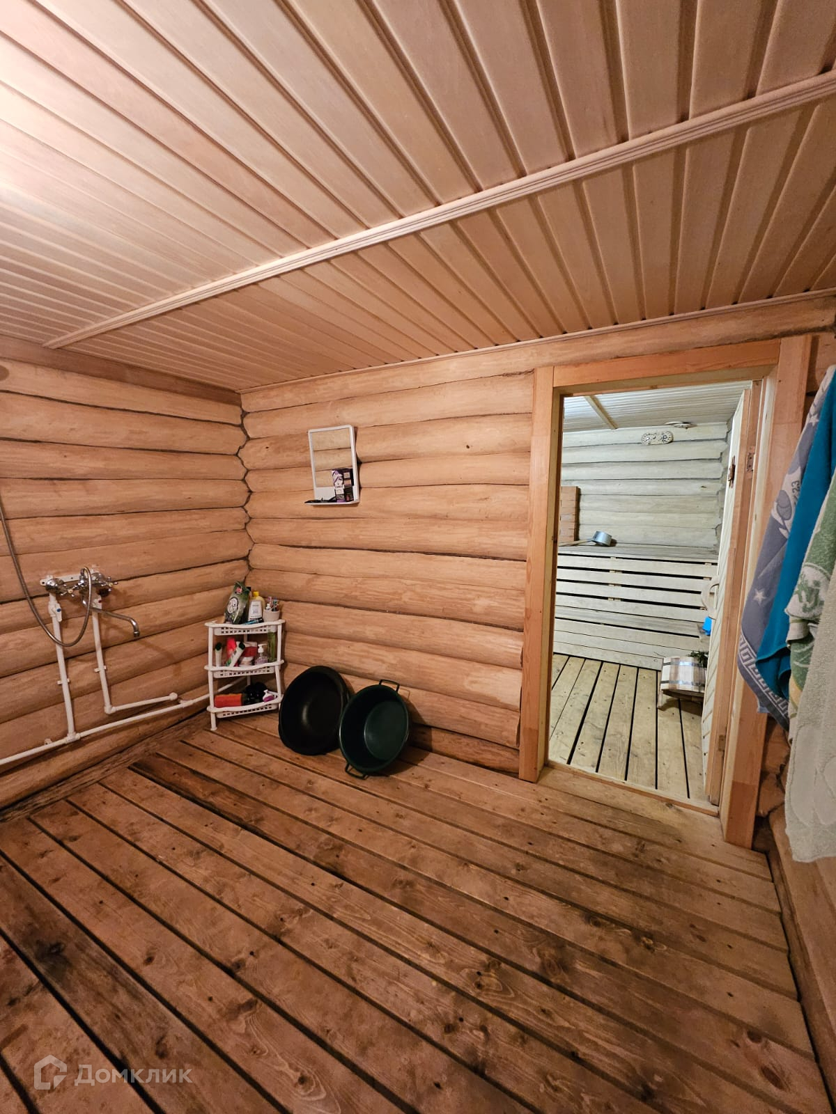 В доме расположена баня из натурального дерева.