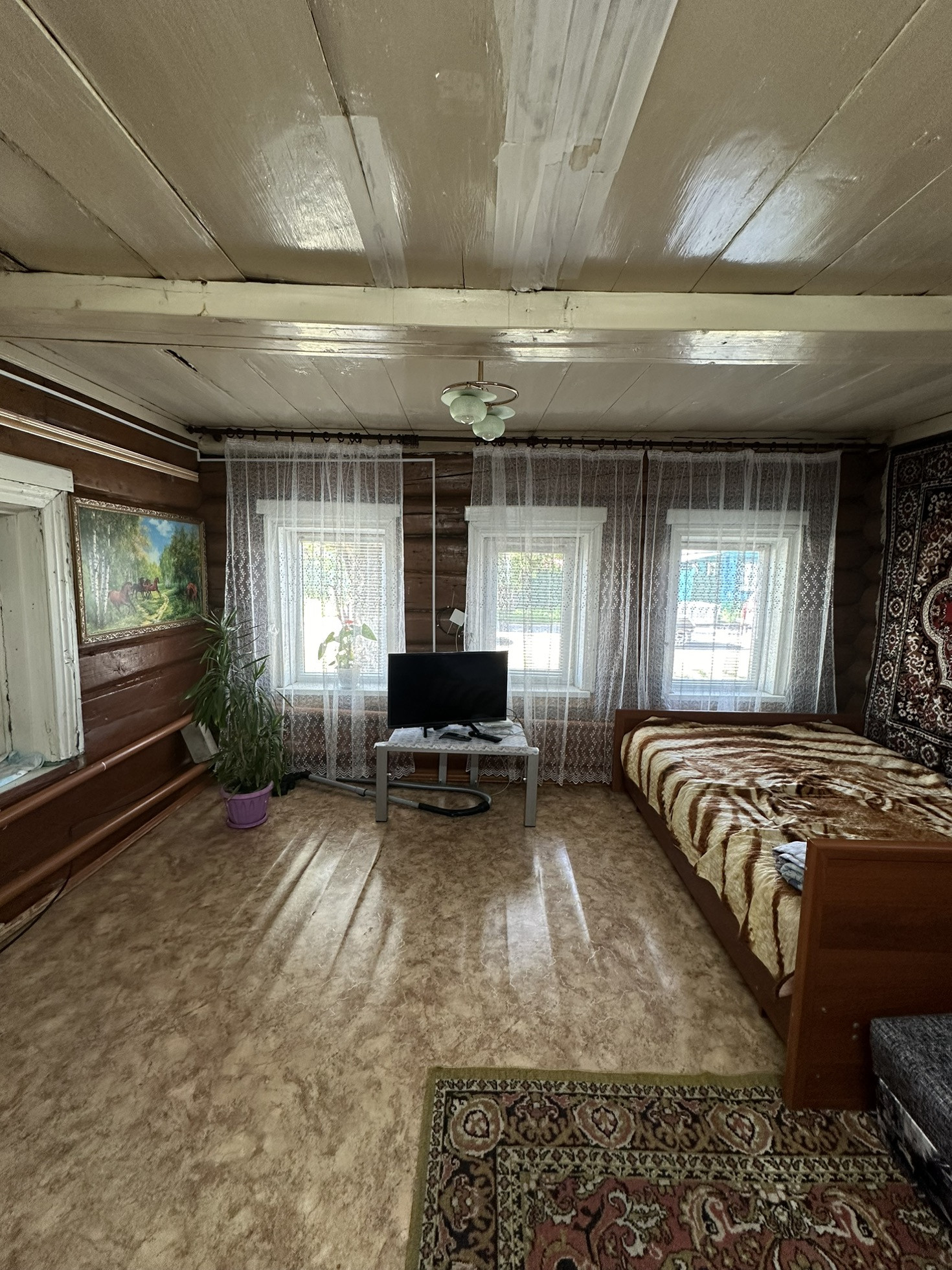 Продается бревенчатый дом с пристроем из кирпича. Участок ровный, земля обработанная . Имеется гараж. В доме установлены пластиковые окна. Газ в доме.