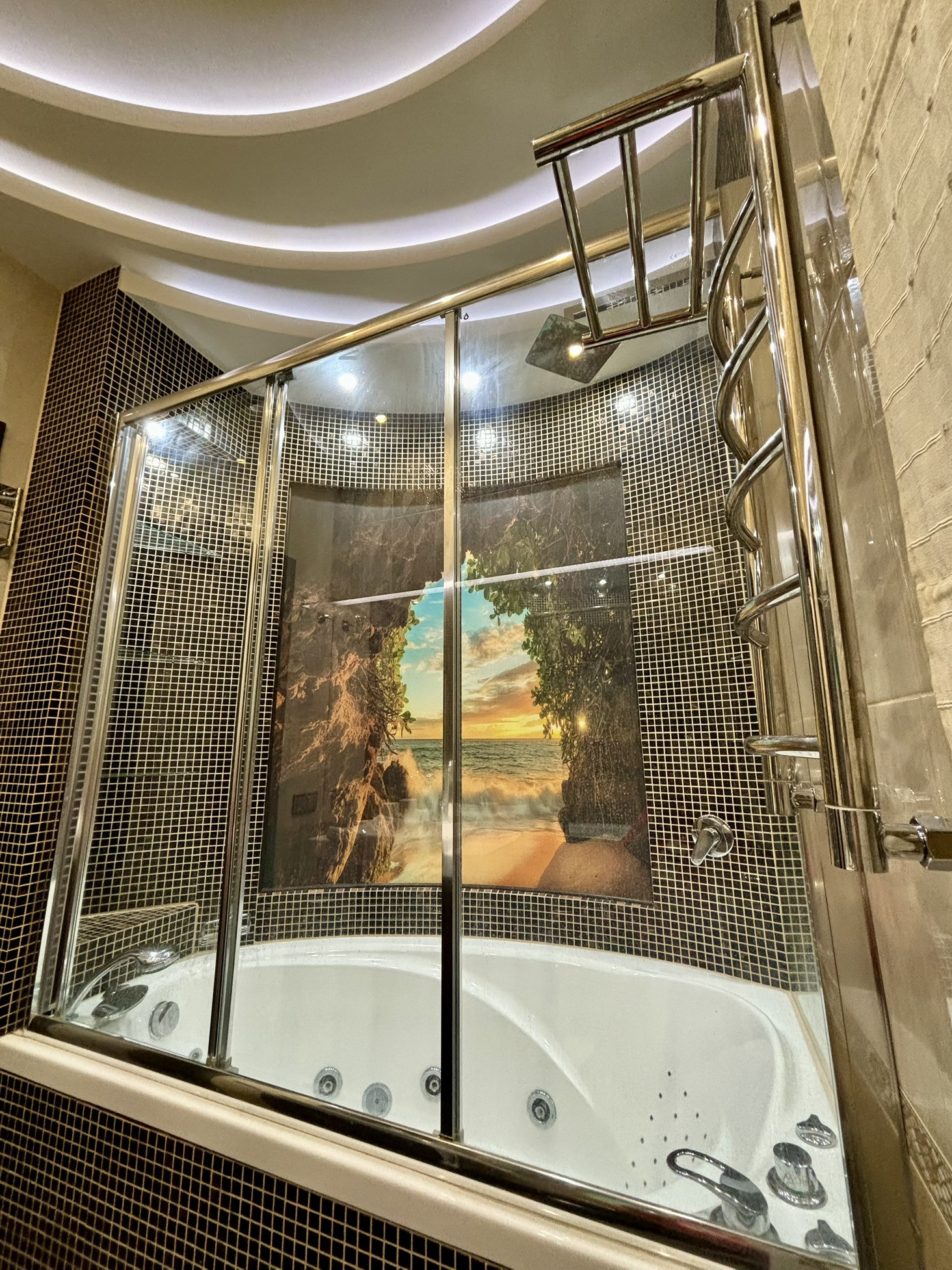 Баня(печь Harvia) с выходом на террасу, веранда с летней кухней, подземный гараж с выходом в дом, и отдельностоящий гараж со смотровой ямой и погребом. Есть зимний сад. Перед домом асфальтированные парковочные места для 2х автомобилей.