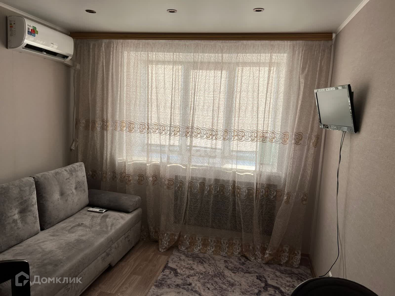 Стены выровнены гипсокартоном ,натяжные потолки с освещением (регулируется пультом и выключателем ) 4 режима освещения . Без кондиционера