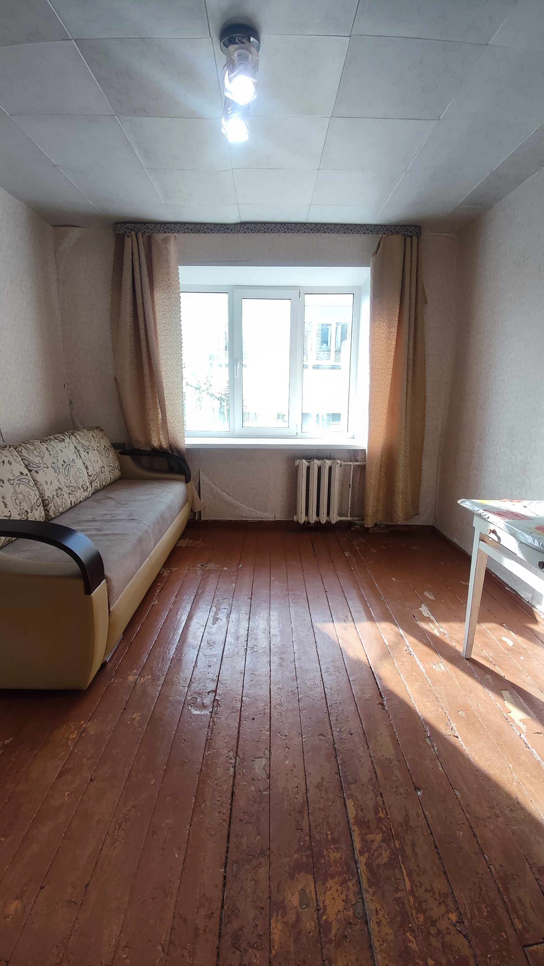 Хотя комната требует небольших ремонтных работ, это не помешает вам создать уютное и комфортное пространство по своему вкусу.