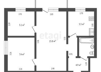3-комнатная квартира на продажу, 58.2 м2, Железнодорожная улица, 14