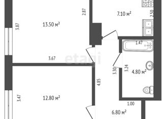 Продается двухкомнатная квартира, 53.74 м2, проспект Октября, 99