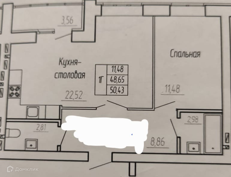 Квартира  общей площадью 48.9 кв м с получистовой