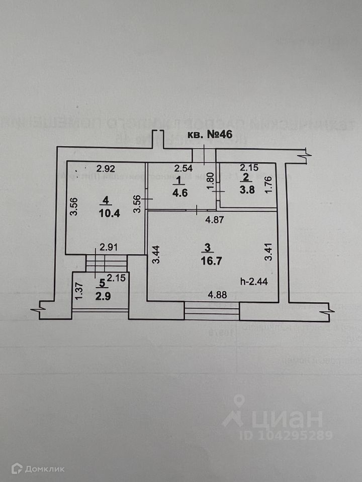 Высота потолков 2.5 м