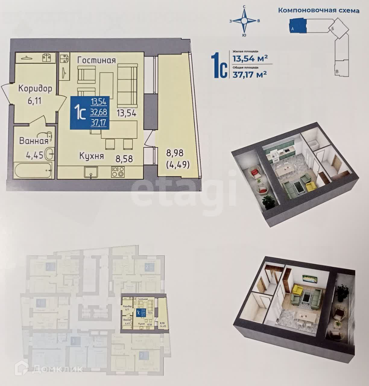 Общая площадь 37.17 м2