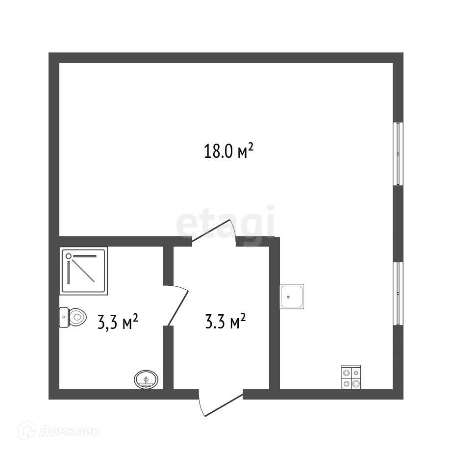 Общая площадь 28.7 м2