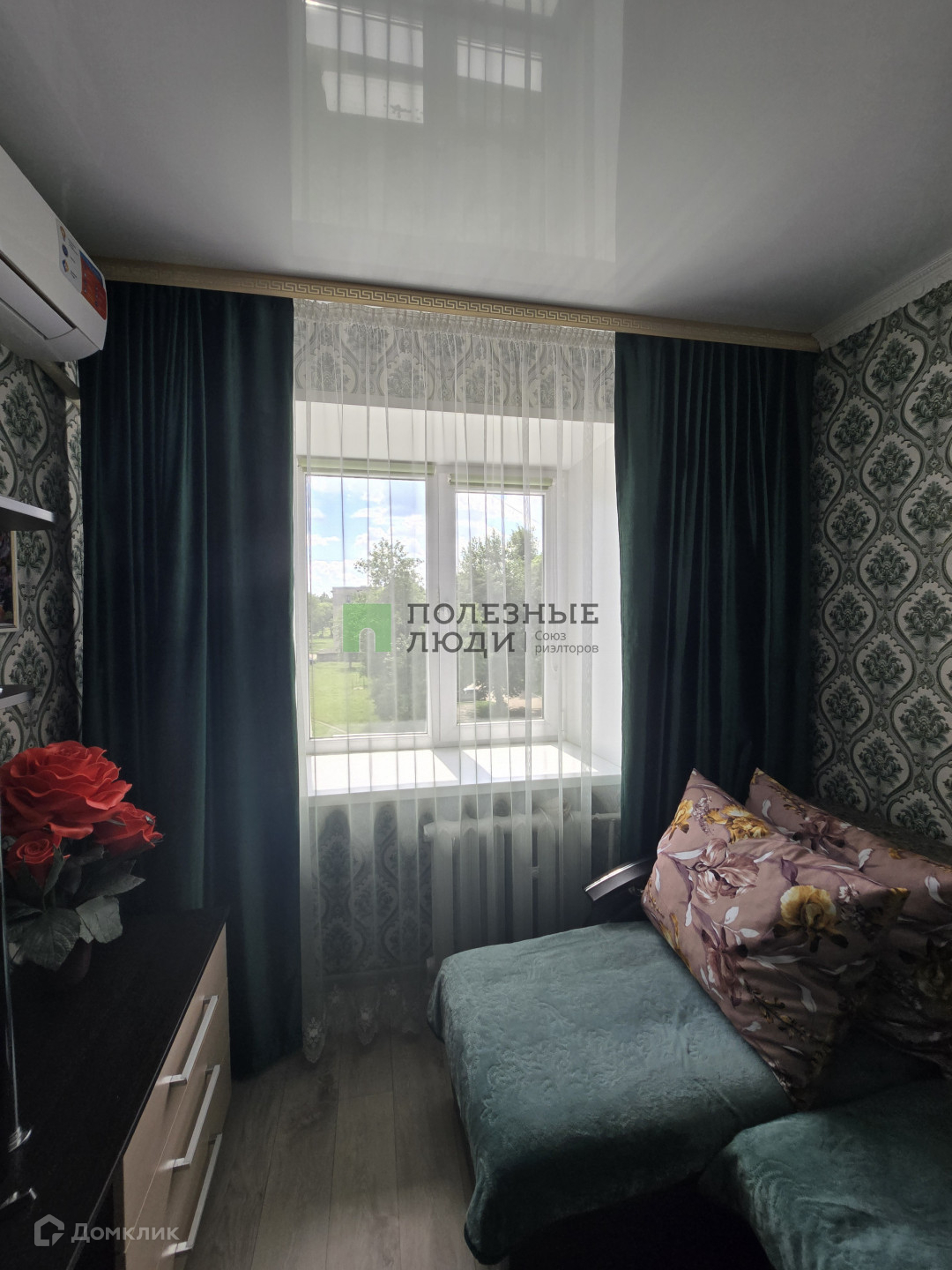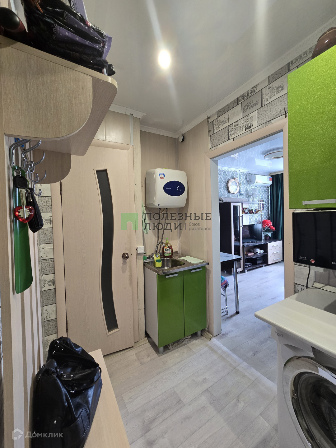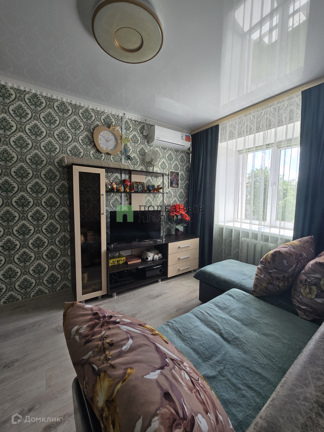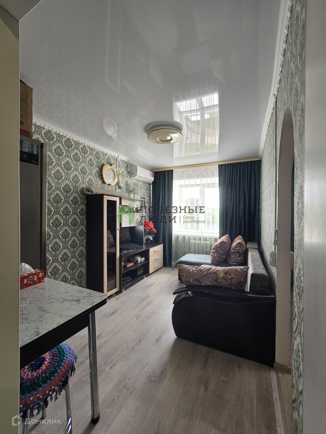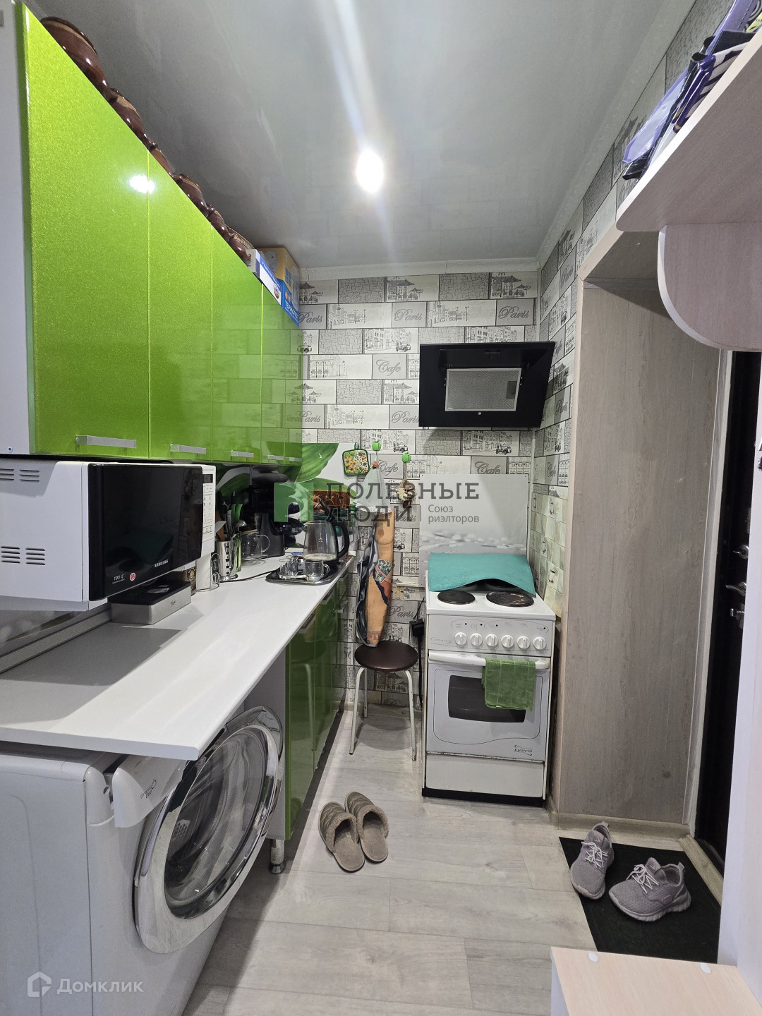 Есть кондиционер, кухонный гарнитур.